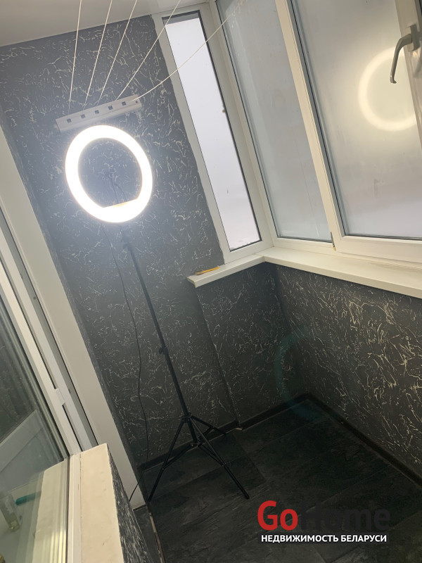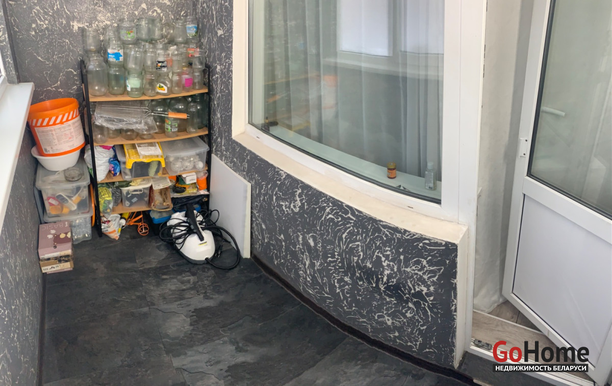 Лоджия утеплена (поло, стены) пеноплексом, оштукатурена, установлены однокамерные стеклопакеты, уложен ламинат