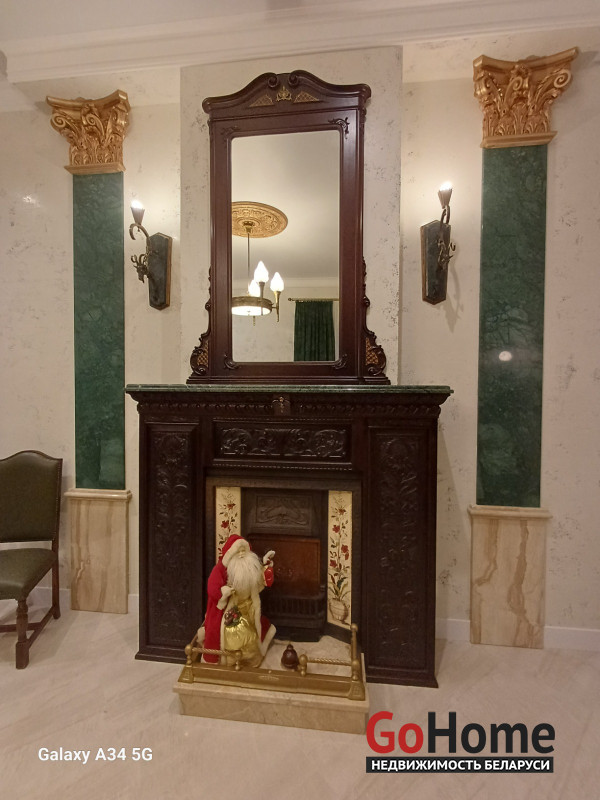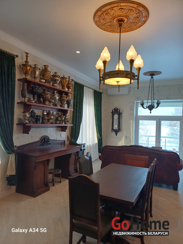 1 этаж, пол с подогревом: площадь 106м2 (8х12), прихожая, кухня, гостиная с аутентичной оригинальной мебелью для ценителей старины и антиквариата, панорамные окна, бассейн, сауна. Кухня в стиле прованс полностью укомплектована: холодильник, посудомоечная машина, духовой шкаф, СВЧ микроволновка, кофемашина, индукционная панель, вытяжка, чайник, тостер, полный набор посуды для приготовления и для приёма пищи. Гостиная: буфет, сервировочный стол, генератор льда, обеденный раздвижной стол (10-14 персон), стулья, кресла, кожаный диван, кожаный диван-релакс, телевизор, зеркальный диско-шар. Выход на балкон-террасу с видом на озеро.