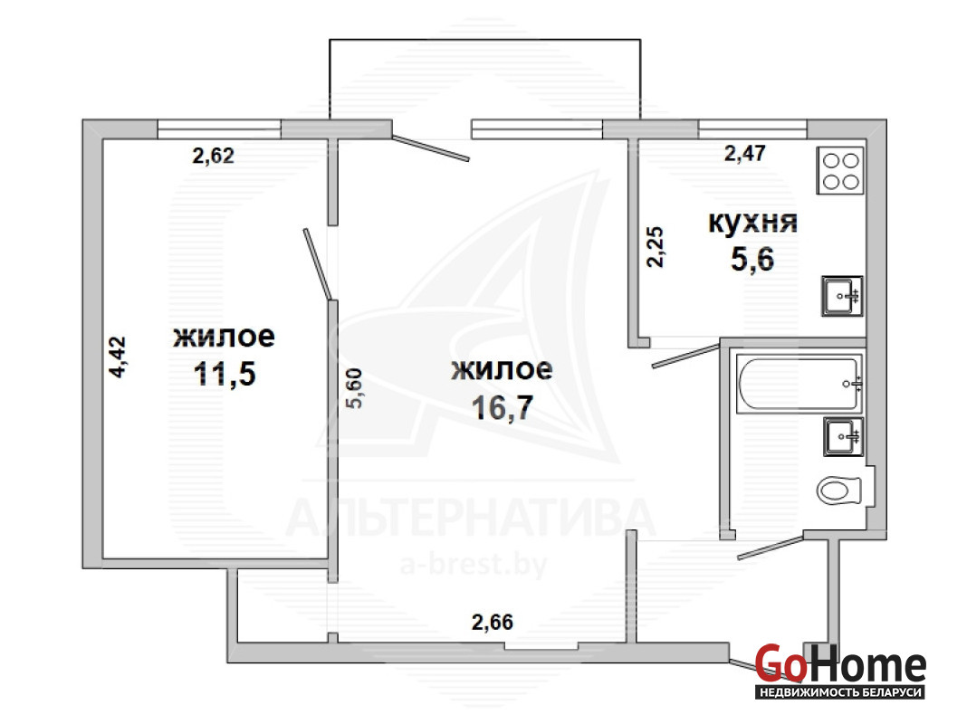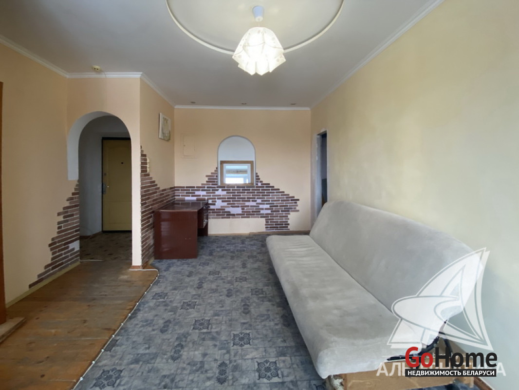 2-комнатная квартира, г. Брест, пр-т Машерова, 1961 г.п., 4 / 5 кирпич, 40,7 / 39,9/ 29,3 / 5,6, санузел совмещенный, балкон, подвал, стеклопакеты, входная дверь металлическая, потолки (2,66 м) - снежка, многоуровневые (в зале), полы - доска под лак (в кухне), стены оклеены обоями, ванна, домофон. Вся мебель и техника по договоренности. Квартира в жилом состоянии. Все окна выходят во двор. Чистый подъезд. Во дворе игровая детская площадка, парковка для автомобилей. Лот - 260026