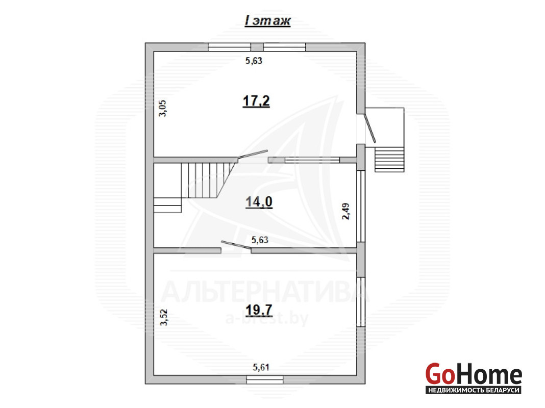 Дачный дом жилого типа в Брестском р-не. 1990 г.п. 1 этаж, мансарда. Общ.СНБ - 123,2 кв.м, общ.- 72,5 кв.м, жил.- 53,0 кв.м, кух.- 14,0 кв.м. 3 комнаты.