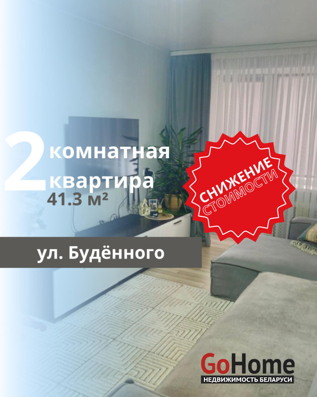 Подписывайтесь на наш instagram @ecrzby для удобного слежения за новыми актуальными объектами.Продается 2-комнатная квартира на ул. Буденного, 1967 года постройки, расположенная на 4 этаже 5-этажного кирпичного дома. Общая площадь квартиры составляет 41,3 м2, жилая – 26,2 м2, кухня – 26,2 м2, в квартире есть балкон и подвал. В квартире совмещенный санузел. Выполнен качественный ремонт: стеклопакеты, межкомнатные двери из МДФ, металлическая входная дверь, натяжные потолки с разнообразной системой освещения. Полы выложены ламинатом на стяжку, стены оформлены декоративной имитацией кладки в коридоре и кухне, а также обоями. В санузле – современная плитка, заменены сантехнические трубы, проведена новая электропроводка (частично). Установлен домофон. В комплекте остаются кухонный гарнитур, варочная поверхность, встроенный шкаф в зале и диван. Квартира с хорошим ремонтом и чистым подъездом. В шаговой доступности находится пешеходная улица Советская, торгово-развлекательные объекты и отличное транспортное сообщение.
