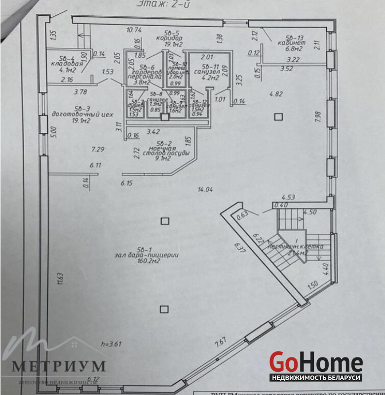 Многофункциональное помещение 269,8 кв.м. располагается на втором этаже с отдельным входом с первого этажа. Строение расположено на первой линии по улице Мирошниченко, 3.