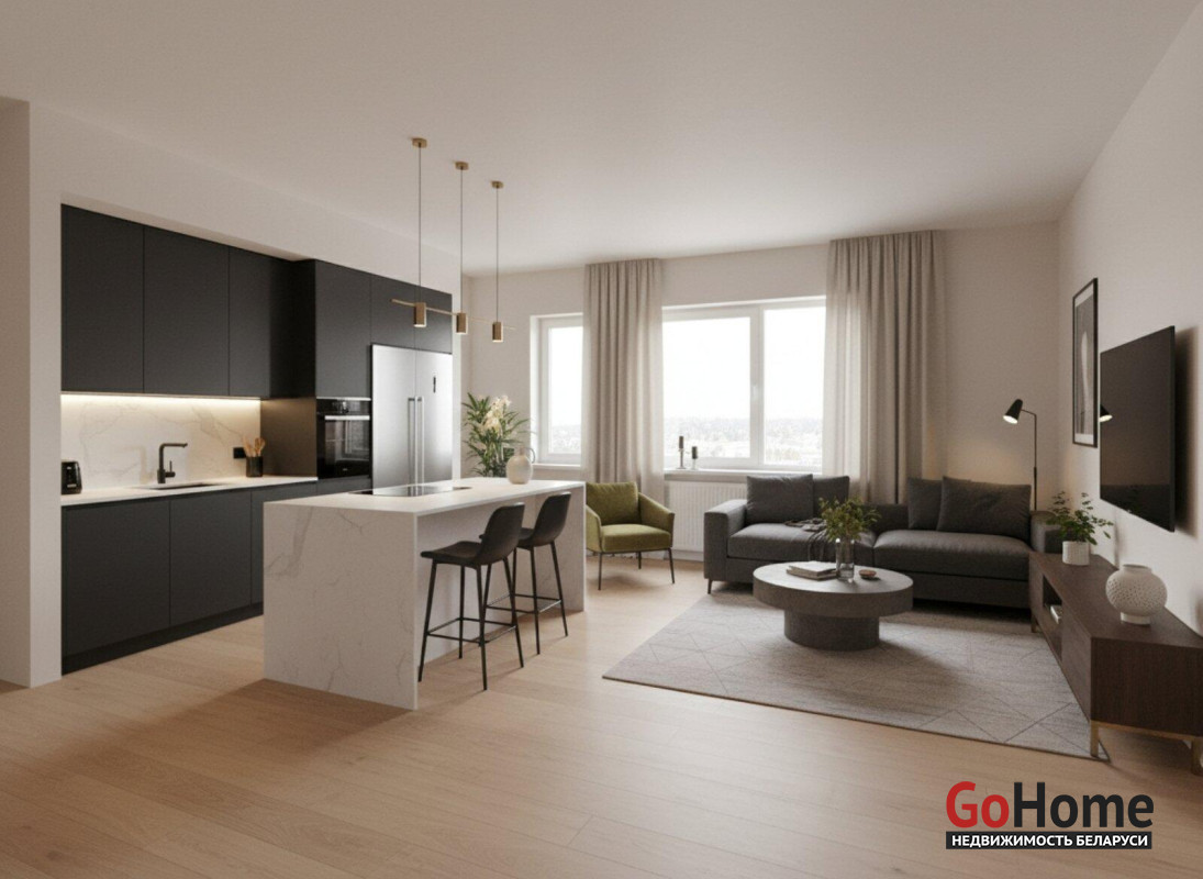 Площадь: общая 46.7 м2 / жилая 35.1 м2 Планировка: свободная (сейчас студия), легко зонируется в евротрешку Этаж: 5-й Состояние: без отделки (бетон), дом сдан в 2025 году Описание объекта:Продается светлая и просторная квартира в самом современном районе страны. Удачная планировка позволяет реализовать формат «евротрешки»: просторная кухня-гостиная (20.0 м2) для семейных вечеров и отдельная жилая комната (15.1 м2). Большой коридор (6.3 м2) дает возможность организовать вместительную систему хранения, не загромождая жилое пространство. Из окон открывается панорамный вид на лесной массив — это тишина, свежий воздух и отсутствие застройки «окна в окна».