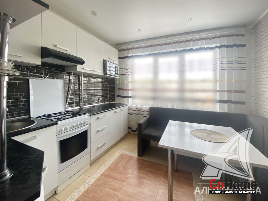 1-комнатная квартира, г. Брест, ул. Ленинградская, 1986 г.п., 5 / 5 панель, 34,0 / 31,8 / 12,1 / 9,2, санузел раздельный, лоджия застеклена, стеклопакеты, межкомнатные двери - массив, входная дверь металлическая, натяжные потолки, полы - ламинат (в комнате) и плитка (в кухне, в коридоре), стены оклеены обоями, в санузле современная плитка, телефон, домофон. Кухонный гарнитур, два шкафа-купе. Квартира с хорошим ремонтом. Все окна выходят во двор. Тамбур на четыре квартиры. Дом расположен в глубине двора. Лот - 260032