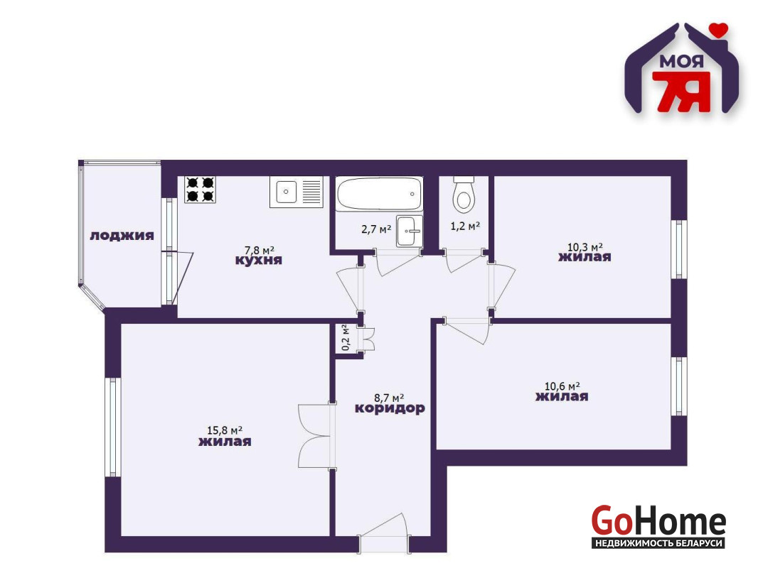 -Раздельный санузел - ещё один важный плюс, обеспечивающий комфортное проживание.