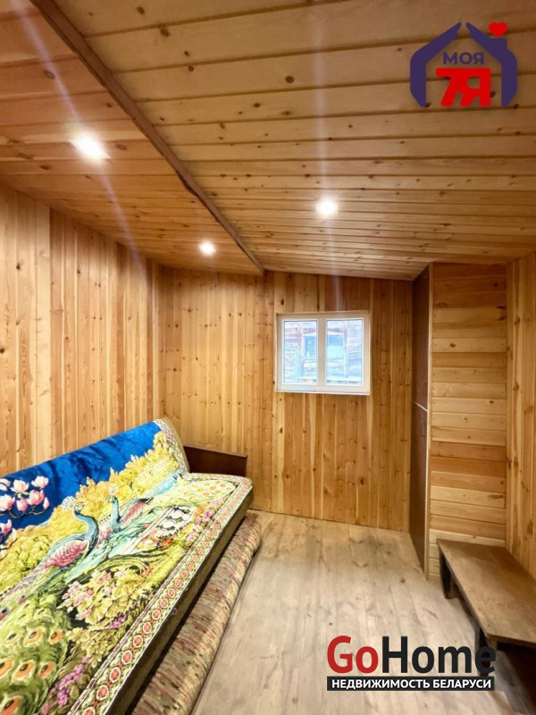 - Общая площадь дома составляет 23,9 м2. Бревенчатый дом построен в 1981 году и поддерживается в хорошем состоянии. В доме есть электричество. Произведена замена проводки.