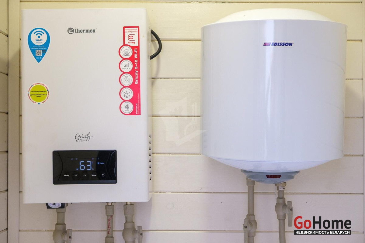 В доме электрическое отопление, установлен котел Гризли с дистанционным управлением через приложение. А также в доме есть печь-камин, которая дает очень хороший обогрев и эстетическое удовольствие.
