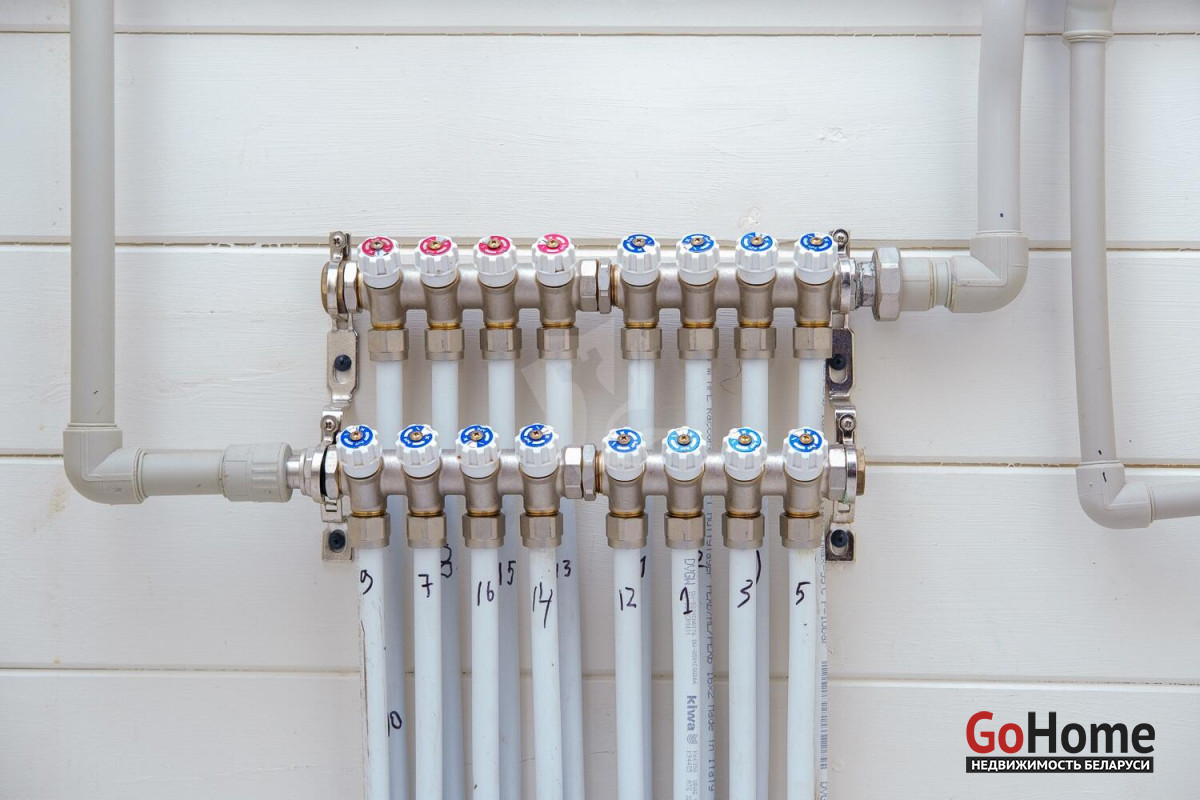 Теплый шнур на воду по открытой части, а также обогреватель трубы для воды, который выведен в дом. Эмитация бруса снаружи и внутри, канализация местная, переливания, 2 емкости по 3 кольца.