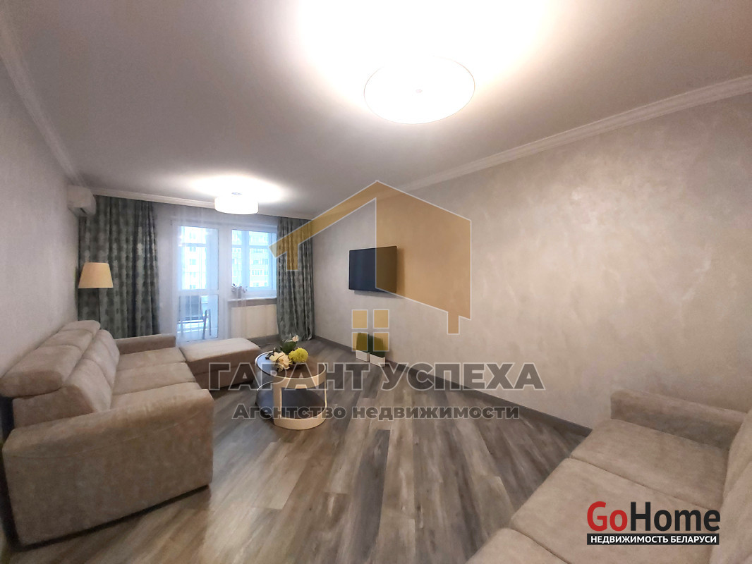 В квартире есть вся необходимая мебель и техника. Кухня: кухонный гарнитур, холодильник, микроволновая печь, духовой шкаф, газовая варочная панель, чайник, посуда и приборы. В зале - два дивана и телевизор. В комнате - двуспальная кровать, шкаф и телевизор. Раздельный санузел, есть стиральная машина. В коридоре - просторный шкаф.