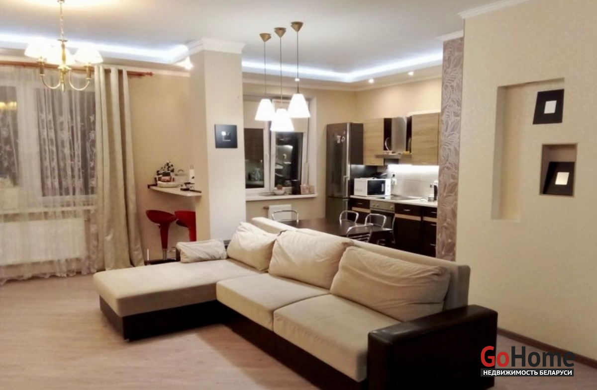 Центр. Новый дом. Просторная, полноценная двухкомнатная квартира, гостинная совмещена с кухней и отдельно спальная комната.