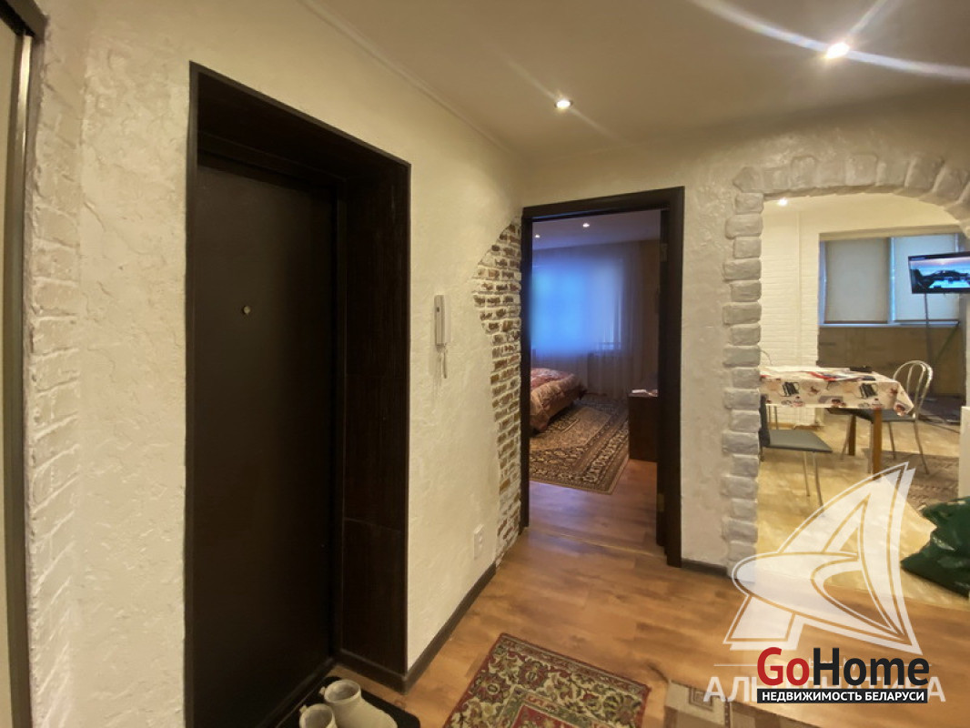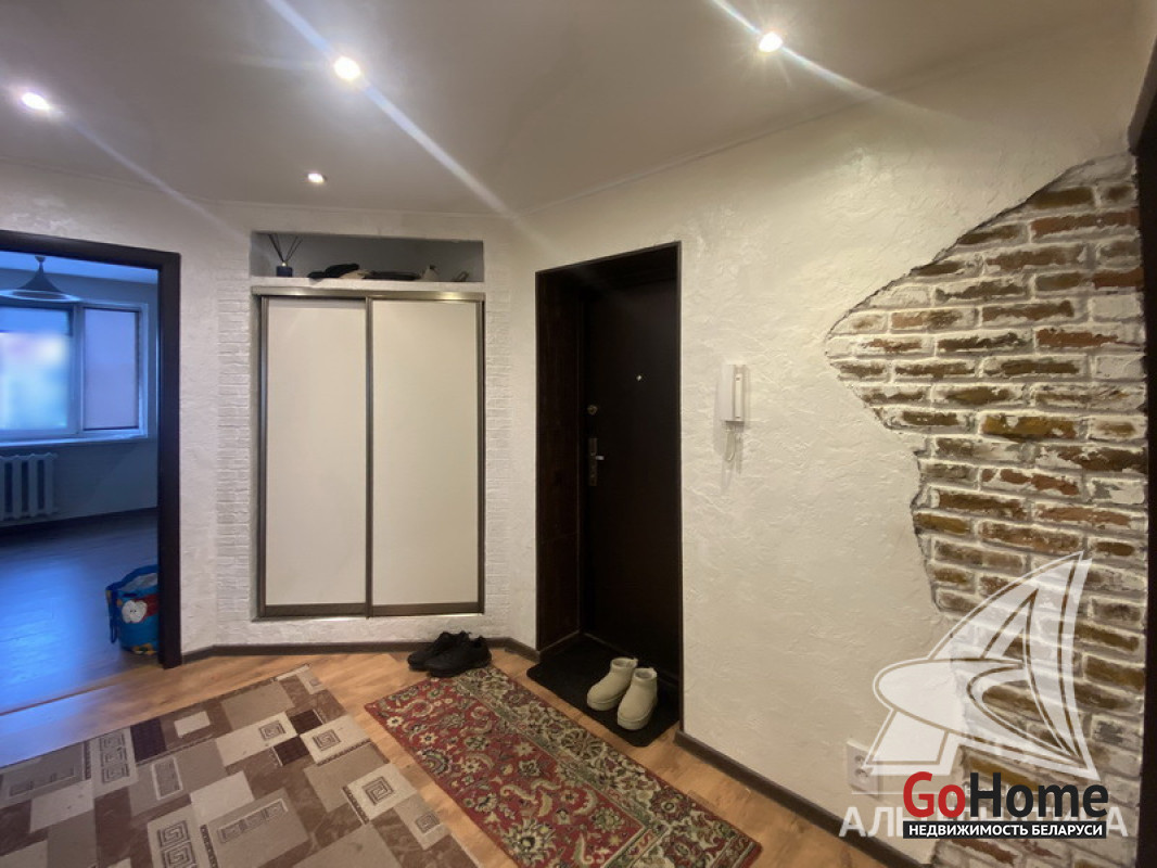 2-комнатная квартира, г. Брест, наб. Франциска Скорины, 1990 г.п., 5 / 5 кирпич, 53,7 / 51,4 / 31,2 / 9,1, санузел раздельный, лоджия застеклена, подвал, стеклопакеты, входная дверь металлическая, потолки (2,45 м) - снежка (в зале) и из гипсокартона, полы - ламинат (положен на доску) и плитка (положена на стяжку - в кухне, на лоджии), на стенах декоративная отделка штукатуркой, в санузле современная плитка, заменена сантехника, стальная ванна, заменены сантехнические трубы, установлены новые радиаторы (частично), проведена новая электропроводка (частично), домофон. Кухонный гарнитур, бытовая техника (в кухне), встроенные шкафы, подсветка (на лоджии). Квартира с хорошим ремонтом. Чистый подъезд. Есть технический этаж. Система видеонаблюдения. Дом расположен в глубине двора. Во дворе игровая детская площадка, парковка для автомобилей. Лот - 260051
