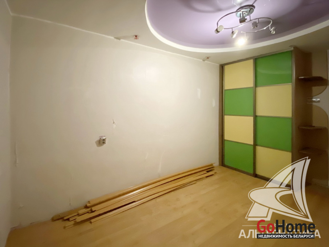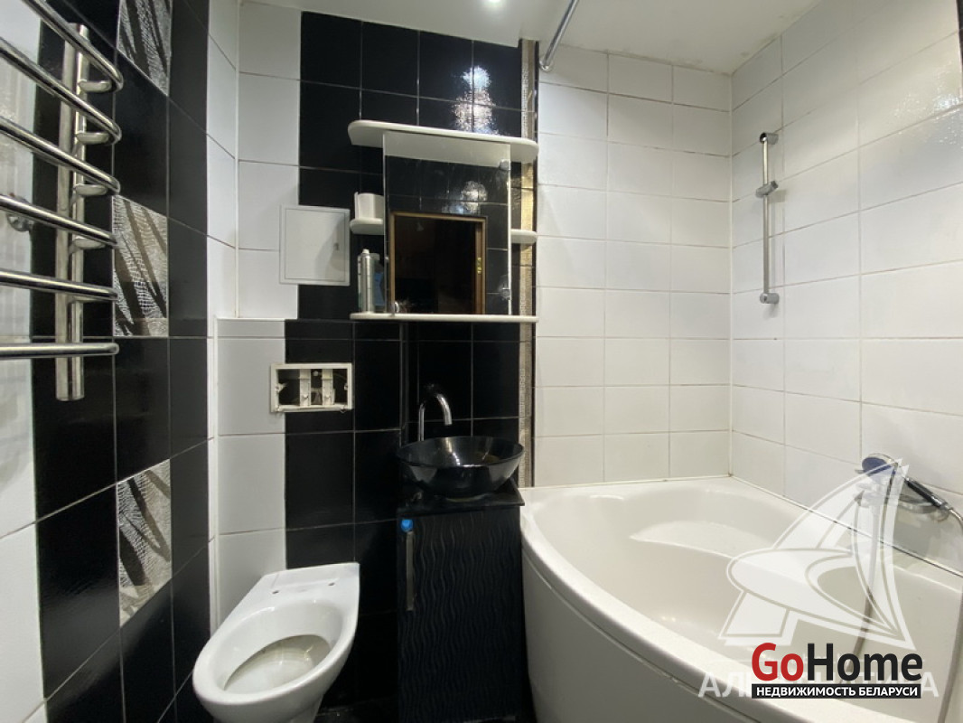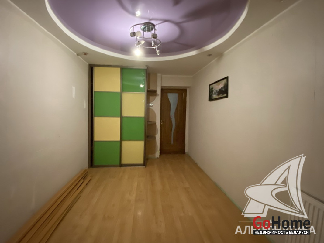 2-комнатная квартира, г. Брест, ул. Писателя Смирнова, 1984 г.п., 1 / 9 кирпич, 48,0 / 45,8 / 28,1 / 8,1, санузел совмещенный, две лоджии застеклены, стеклопакеты, межкомнатные двери - массив, входная дверь металлическая, потолки - снежка, полы - ламинат, стены оклеены обоями, в санузле современная плитка, заменена сантехника, угловая акриловая ванна, домофон. Кухонный гарнитур, газовая плита, микроволновая печь, стол, стулья, подвесная тумбочка (в ванной), кровать, шкаф-купе (в комнате, в коридоре). Квартира в жилом состоянии. Квартира расположена на две стороны. Тамбур на три квартиры. Во дворе игровая детская площадка, парковка для автомобилей. Лот - 260050