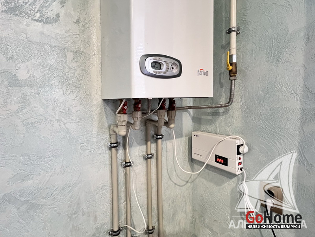Коммуникации: отопление - газовый котел, газ - централизованный (в доме), водоснабжение - централизованный водопровод, электричество - централизованное, канализация - авономная.