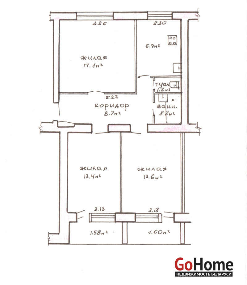 Продаётся просторная 3-х комнатная квартира в центре города Осиповичи.