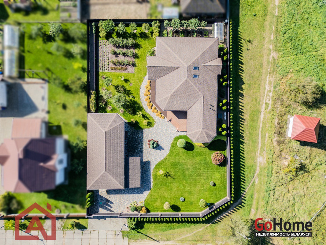 Весь участок покрыт зоной Wi-Fi (бесшовная система) газон с автополивом, плодовый сад (вишни, яблони, сливы, груши, персик, шелковица, виноград), 15 кустов голубики, смородина черная, красная, белая, малина, клубника, ежевика и декоративные кустарники. Грядки и теплица с системой капельного полива и «покупной землёй». По участку установлена декоративная подсветка. Есть удаленное управление многими функциями дома, мониторинг, включение/выключение, открывание/закрывание и пр.