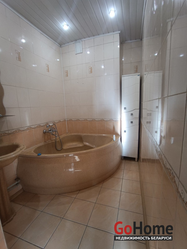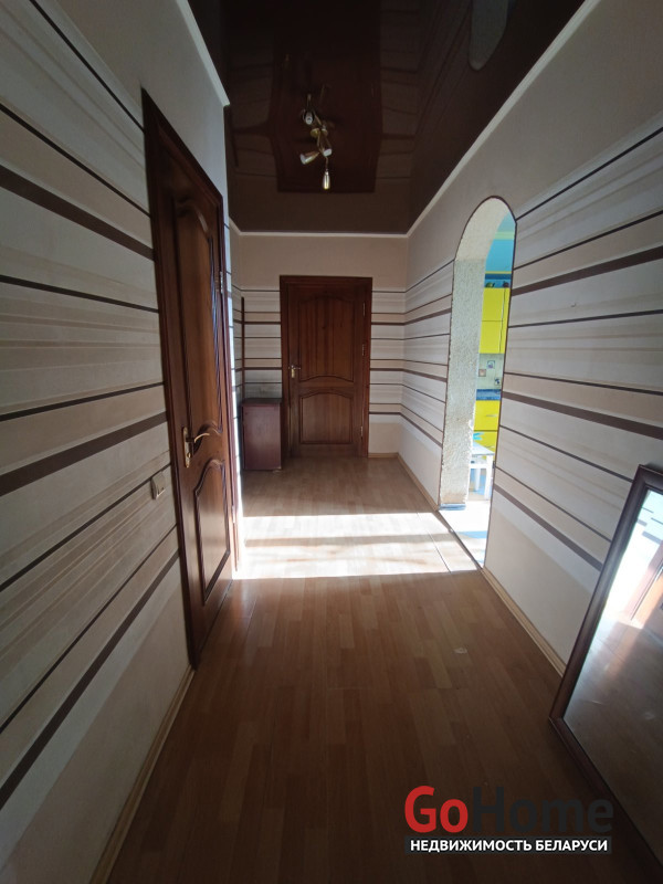 В продаже одноквартирный жилой дом в г. Пинске, ул. Лозовая (район Соломинка). Располагается на участке площадью 0,0919 га, ограждение по периметру, правильной прямоугольной формы. Дом из пеноблоков, оштукатурен, кровля - шифер. Год постройки 2006. Общая площадь 188,7 м², жилая 35,9 м², кухня 22,6 м². Высота потолка 2,79 м. На первом этаже кухня и две жилые комнаты. На втором этаже проведено отопление и канализация, обустроены три комнаты, гардеробная, санузел, лоджия, только не сданы в эксплуатацию. Входная дверь - металлическая, межкомнатные двери - массив, пол - ламинат. Установлены окна ПВХ, потолки натяжные и гипсокартон, стены выровнены, санузел обложен плиткой. Отопление газовое + твердотопливный котёл. Вода - центральная, канализация местная. В цокольном этаже есть большой гараж, топочная, кладовая. На участке сарай из блоков. Осталось сделать косметический ремонт под себя! Рядом автобусная остановка.