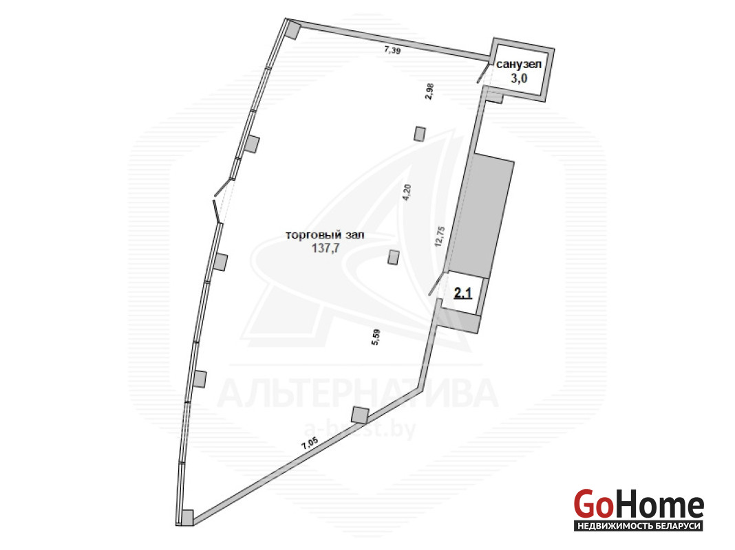 Торговое помещение в бизнес - центре "IQ" в аренду в районе Варшавского шоссе города Бреста общей площадью 142,8 кв.м. Изолированное помещение с отдельным входом расположено на 1 (первом) этаже самого нового и современного бизнес - центра города. Состоит из торгового зала площадью 137,7 кв.м, подсобного помещения (2,1 кв.м), отдельного санузла (3 кв.м). Высота потолков - 4,7 м. Панорамное остекление помещения. Установлена пожарная сигнализация, мультизональная система кондиционирования с рекуперацией воздуха, датчиками CO2 и автоматической индивидуальной системой управления, проведено оптоволокно. Рассматриваются все варианты. Лот - 260002A