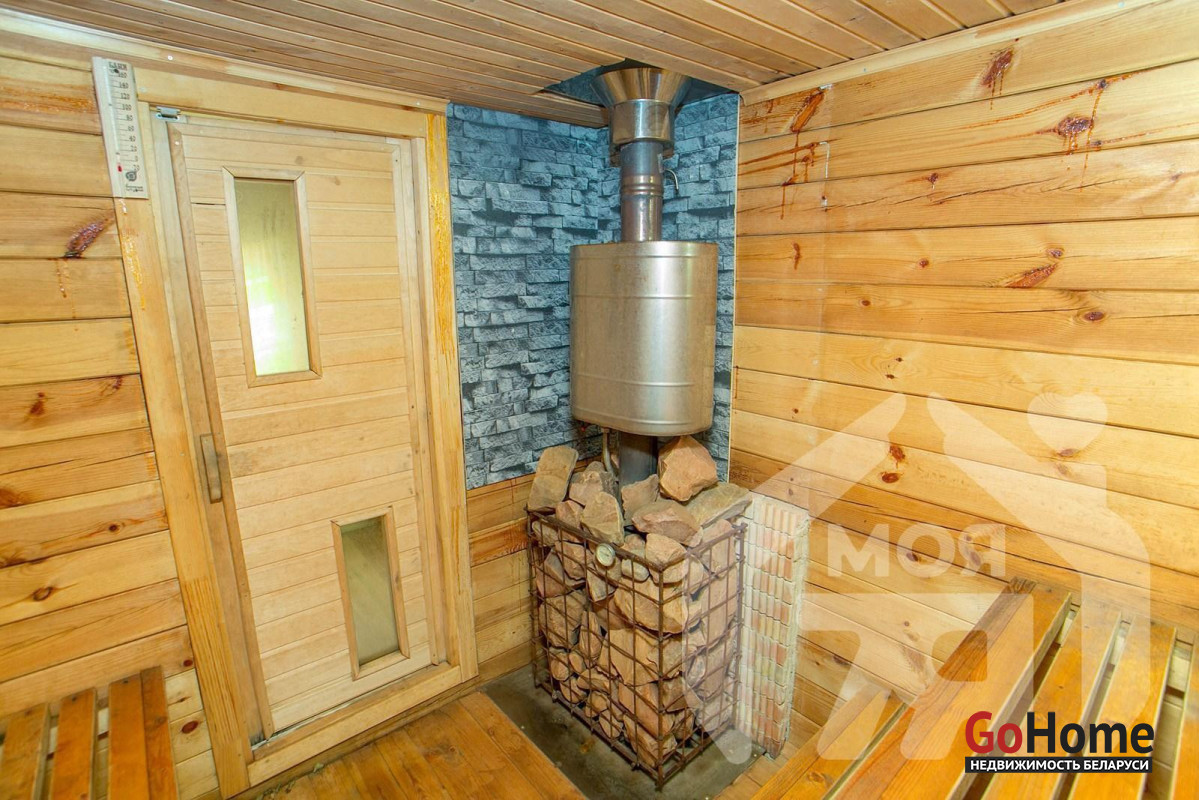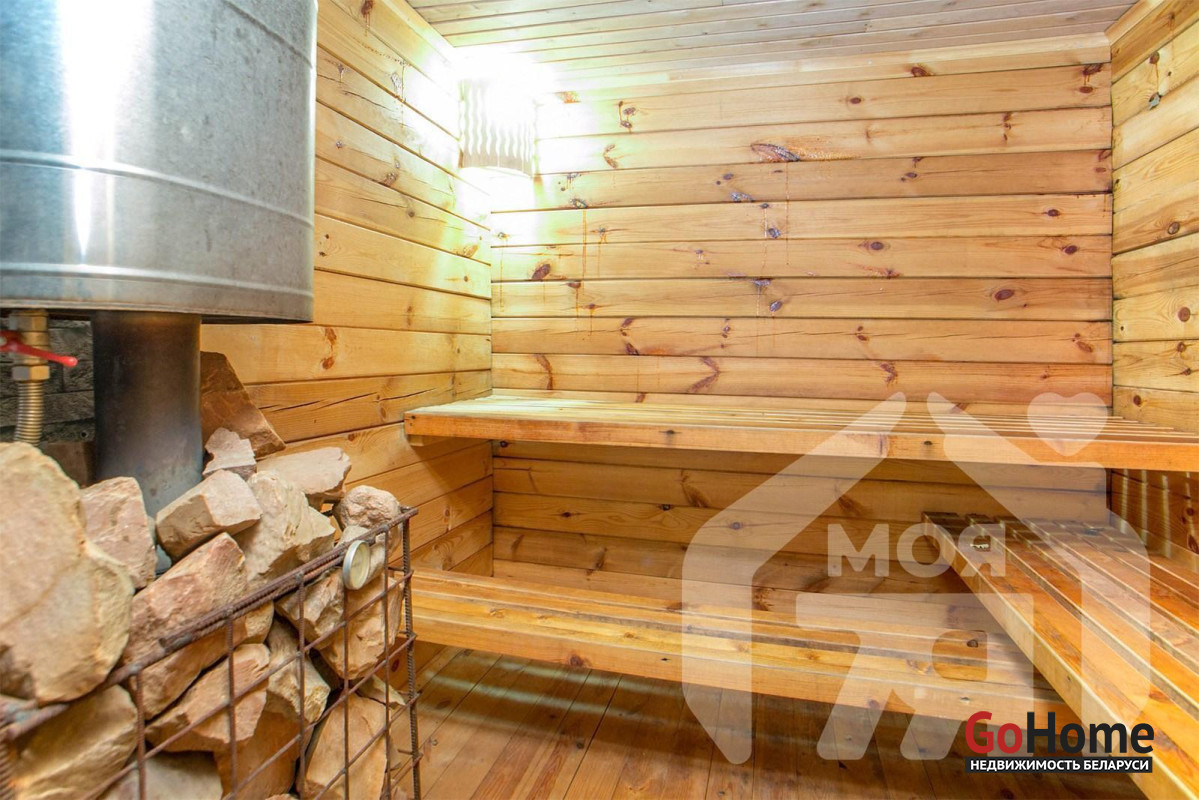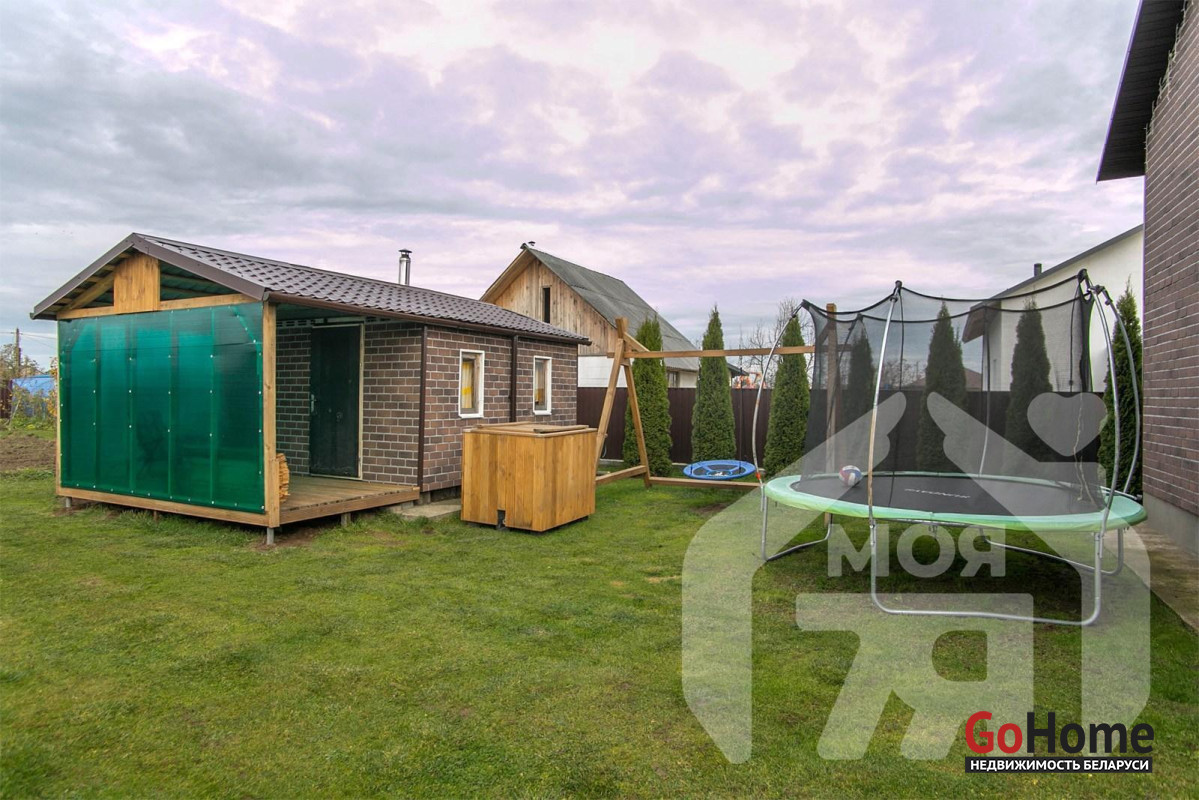 -На участке оборудована полноценная зона отдыха: баня с беседкой, спроектированная как отдельное пространство для релакса и встреч с близкими. Здесь можно проводить время в любое время года - зимой париться, летом устраивать вечерние ужины на свежем воздухе.