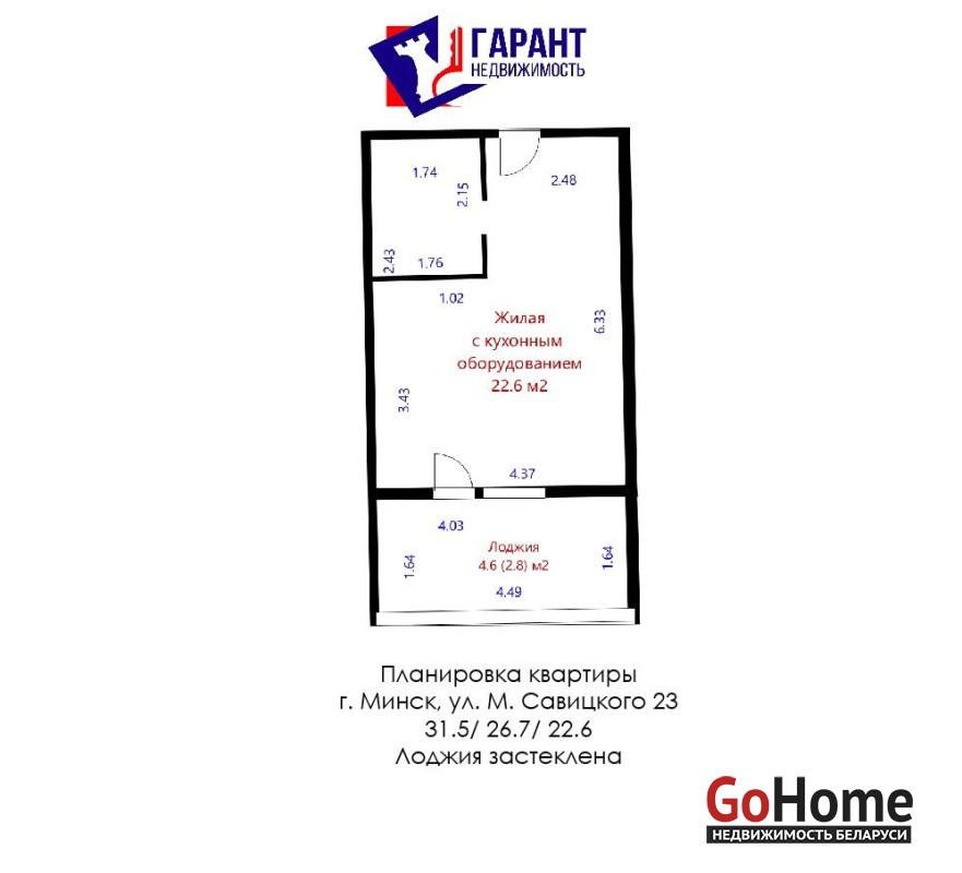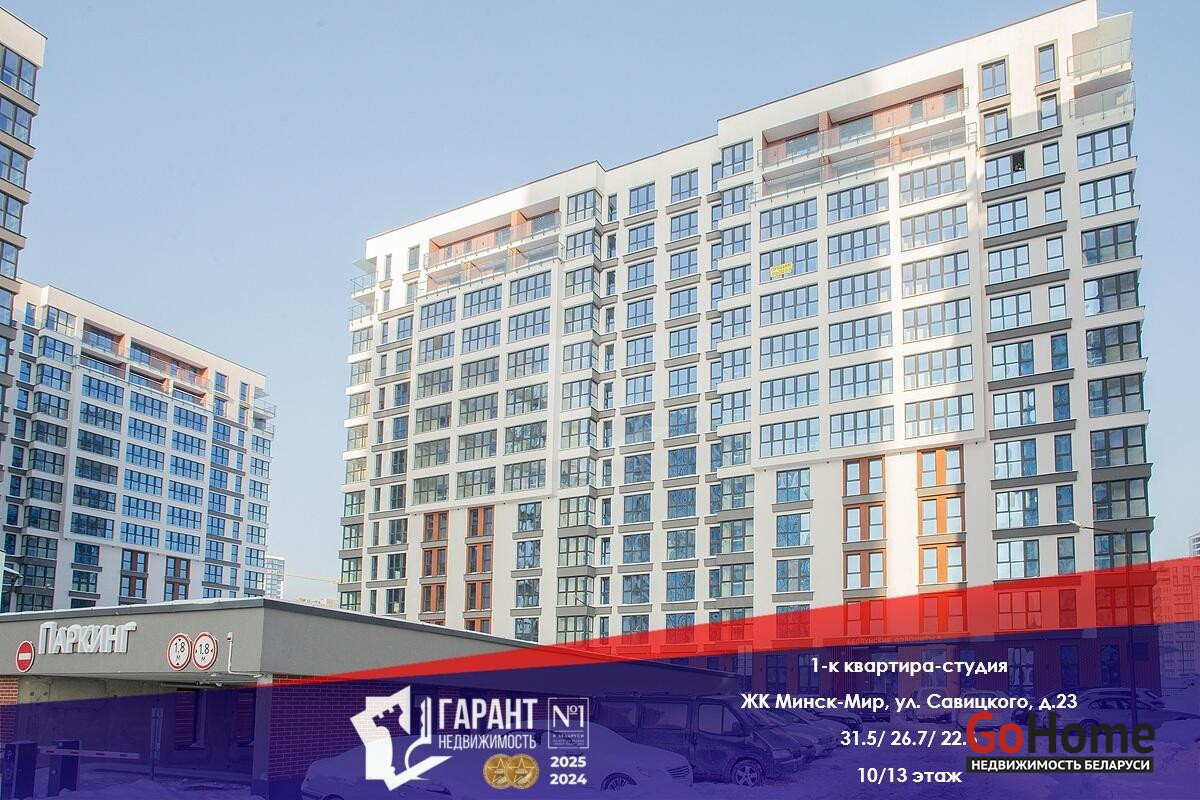 В продаже квартира-студия в ЖК «Минск Мир» расположена по адресу ул. Савицкого, 23.