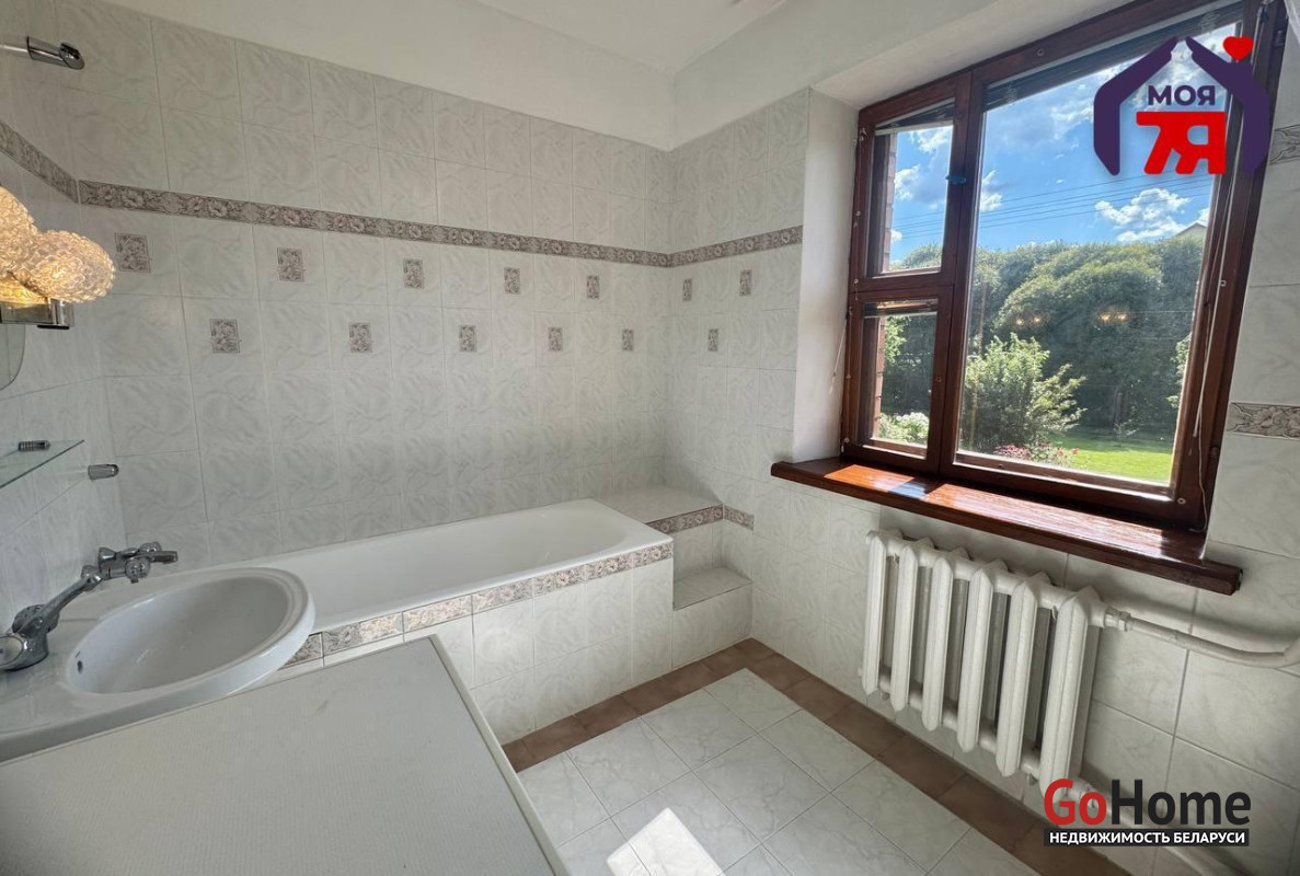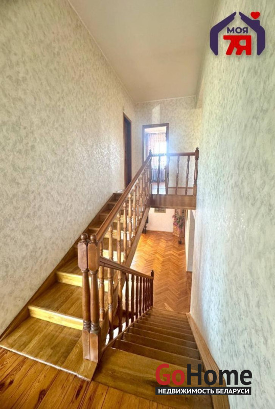 -В доме 3 санузла (на цокольном этаже, на 1 и 2 этаже). Полы покрыты паркетом, доской и плиткой высокого качества, стены - венецианская штукатурка, а потолки имеют высоту 2,7 м и 3,7 м. Установлены окна ПВХ, двери деревянные, ПВХ и прочная металлическая входная дверь.