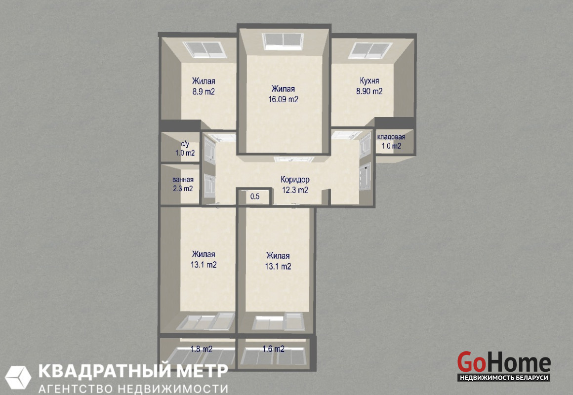 Простор и комфорт:Площадь по СНБ 81 кв.м с четырьмя раздельными просторными комнатами 16.09, 13.1 и 13.1, 8.9 кв.м, расположенными на разные стороны – максимум естественного света и свежего воздуха!