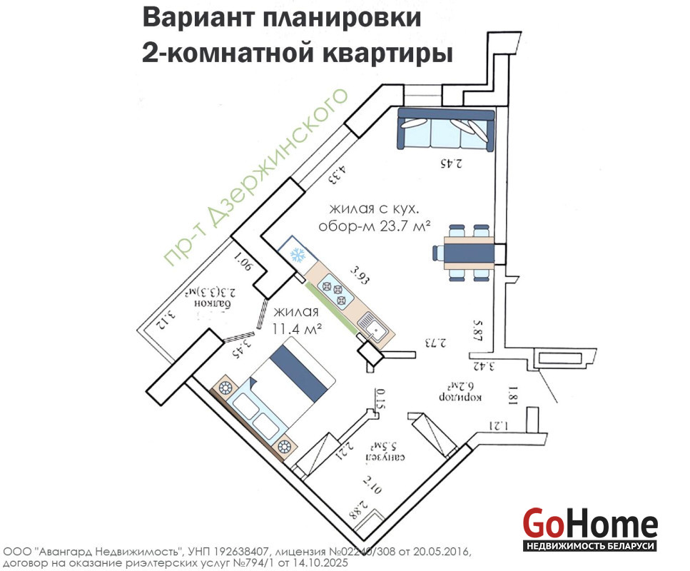 Есть лоджия. Окна выходят на пр. Дзержинского.