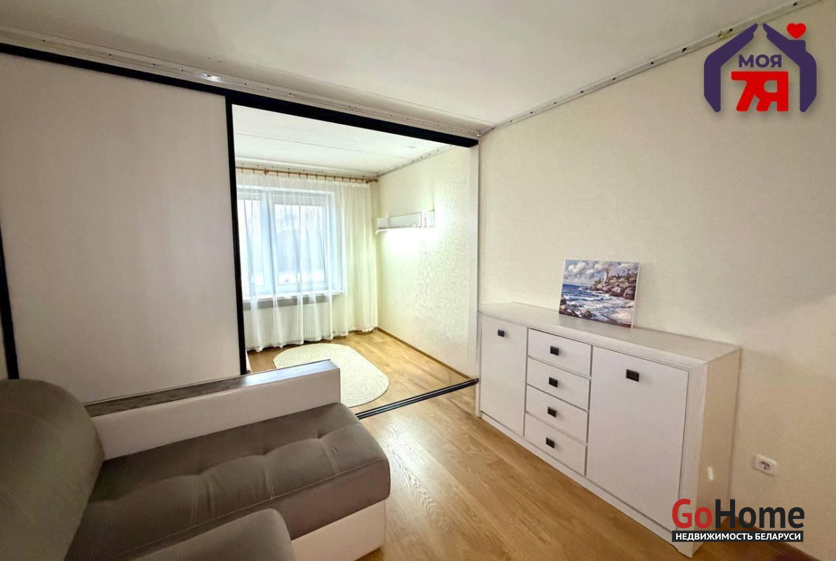 -Жилая комната зонирована раздвижными перегородками, что удобно, если вы хотите разделить пространство на гостевую и спальную зоны без капитальных работ.