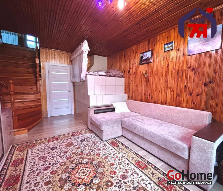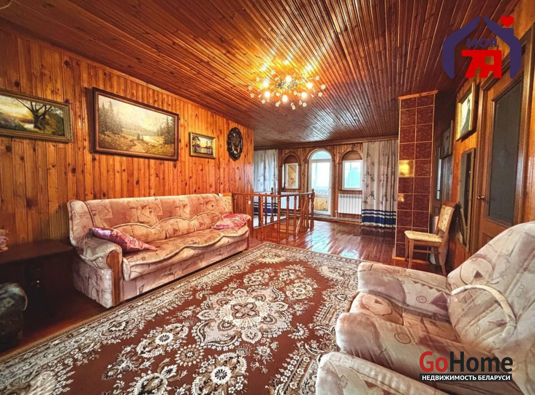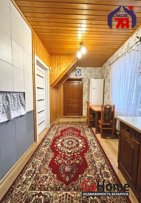 - Уютный и просторный дом общей площадью 136 кв.м. Рациональная планировка включает 4 жилые комнаты, кухню площадью 10,8 кв.м и две уютные лоджии для отдыха. Дом блочный, построен в 1996 году, отличается добротным качеством, теплом и хорошим ремонтом.- Деревянные полы и лестница между этажами создают ощущение домашнего тепла и надёжности. Все коммуникации продуманы до мелочей: отопление от газового котла, вода из скважины, местная канализация. Всё предусмотрено для комфортного проживания в любое время года.- Участок площадью 25 соток грамотно разделён на две части: ухоженный газон для отдыха и огород для любителей выращивать свои овощи и фрукты. Для приятного отдыха предусмотрена баня, где можно расслабиться после насыщенного дня.- Дом расположен в спокойном месте, в 124 км от МКАД, рядом с городами Слуцк (15 км) и Солигорск (28 км).- В нескольких минутах ходьбы находится остановка общественного транспорта, что обеспечивает удобное сообщение с ближайшими населёнными пунктами.