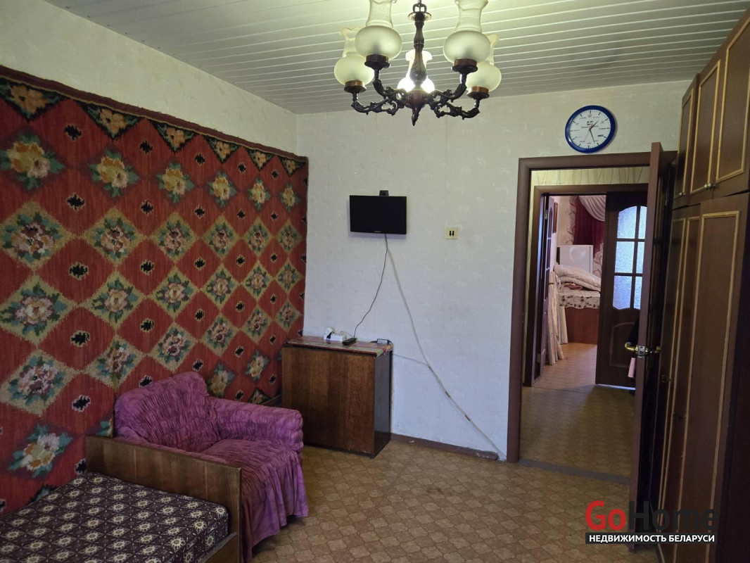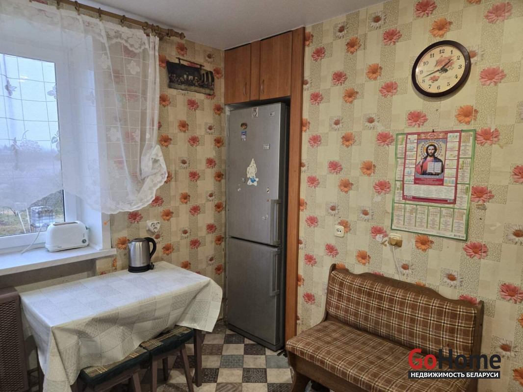 В квартире установлены окна ПВХ, отделан пластиковыми панелями балкон, на полах линолеум и есть всё необходимое для проживания. Инфраструктура: два магазина, привозят почту, курсирует школьный автобус- подвоз детей в сад и школу, в соседний аг. Голоцк. Достаточно парковочных мест.