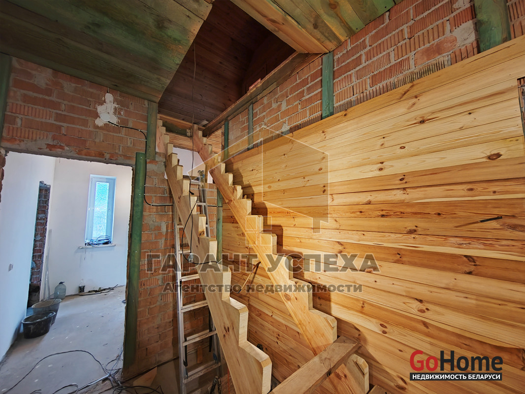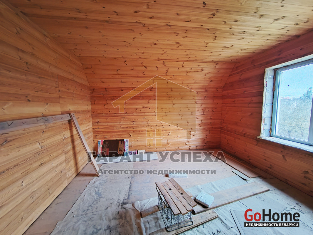 На первом этаже сделана чистовая отделка, а мансардный этаж обшит вагонкой. По дому разведена электропроводка и канализация.
