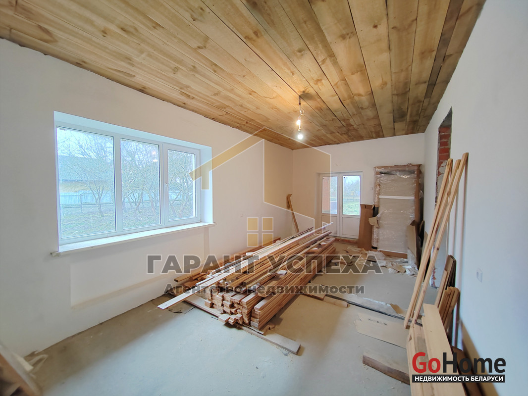 Дом под чистовую отделку с баней, гаражом, погребом, садом на участке в 25 соток. И всё это за разумную цену. Рассматриваем наш следующий лот.