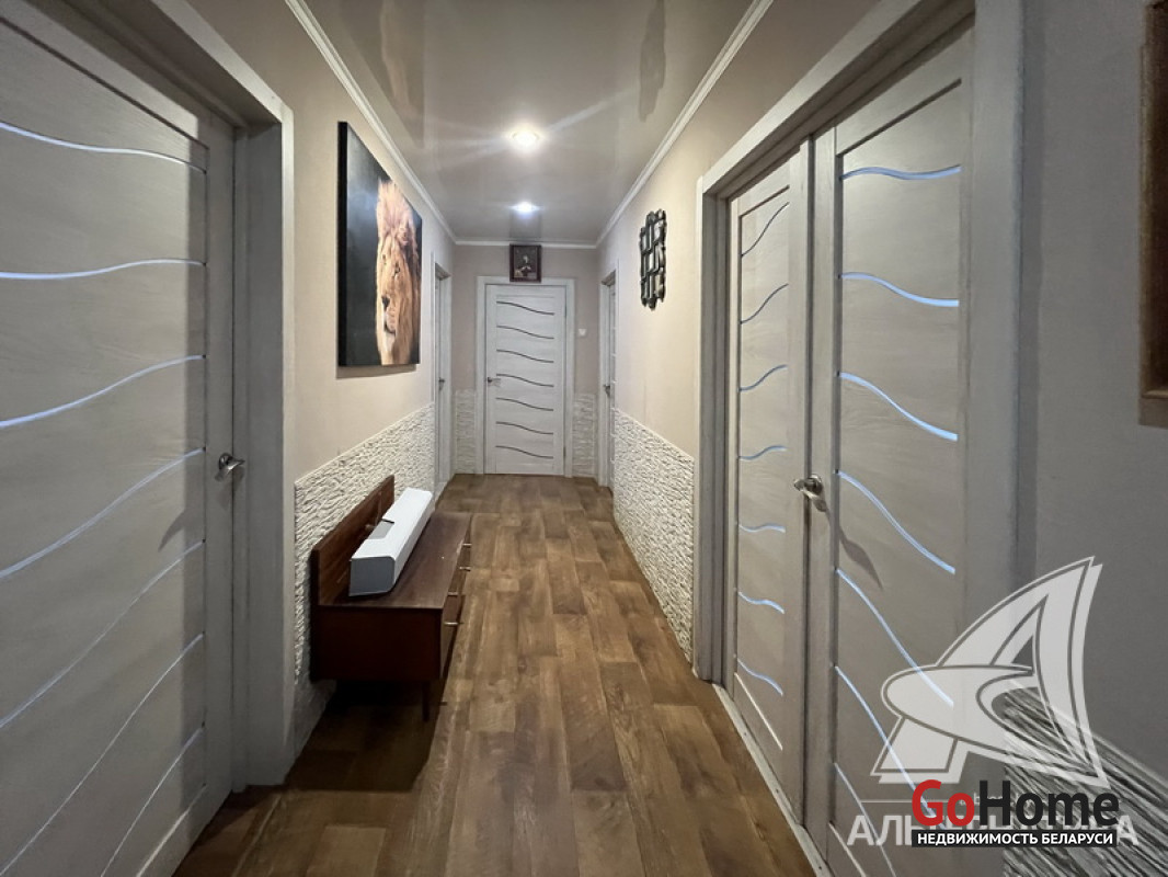 4-комнатная квартира, г. Брест, ул. Орловская, 1981 г.п., 2 / 9 панель, 92,2 / 82,3 / 53,2 / 9,0, санузел раздельный, три лоджии застеклены, стеклопакеты, межкомнатные двери - шпон, входная дверь металлическая, потолки - побелка и натяжные, полы - линолеум и ламинат (в кухне), положены на стяжку (в коридоре), на стенах декоративная отделка штукатуркой (в двух спальнях) и обои, в санузле современная плитка, кондиционер, домофон. Кухонный гарнитур, газовая плита. Большие и вместительный лоджии утеплены, обшиты вагонкой, на каждой имеется вместительный шкаф. В квартире частично произведен ремонт. Чистый подъезд. Один пассажирский лифт. На этаже оборудована сушилка. Дом расположен в глубине двора. Во дворе парковка для автомобилей. Лот - 260076