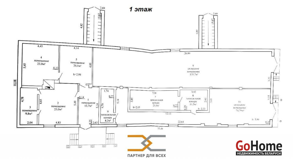 Продается здание овощехранилища в гп. Уречье-2 Любанского района. Общая площадь здания 692,9 м.кв. Подвальное помещение 392 м. кв. В здании расположено три холодильные камеры, два складских помещения, пять помещений для хозяйственных нужд или кабинетов.