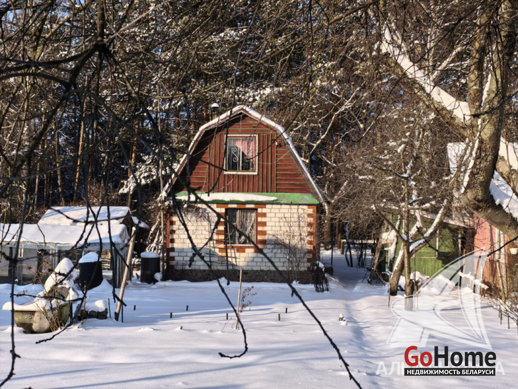 Садовый домик в Брестском р-не. 1990 г.п. 1 этаж, мансарда. Общ.СНБ - 36,9 кв.м, общ.- 36,9 кв.м, жил.- 23,7 кв.м, кух.- 8,7 кв.м 2 комнаты.