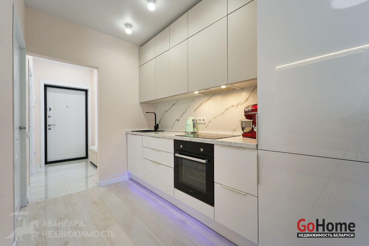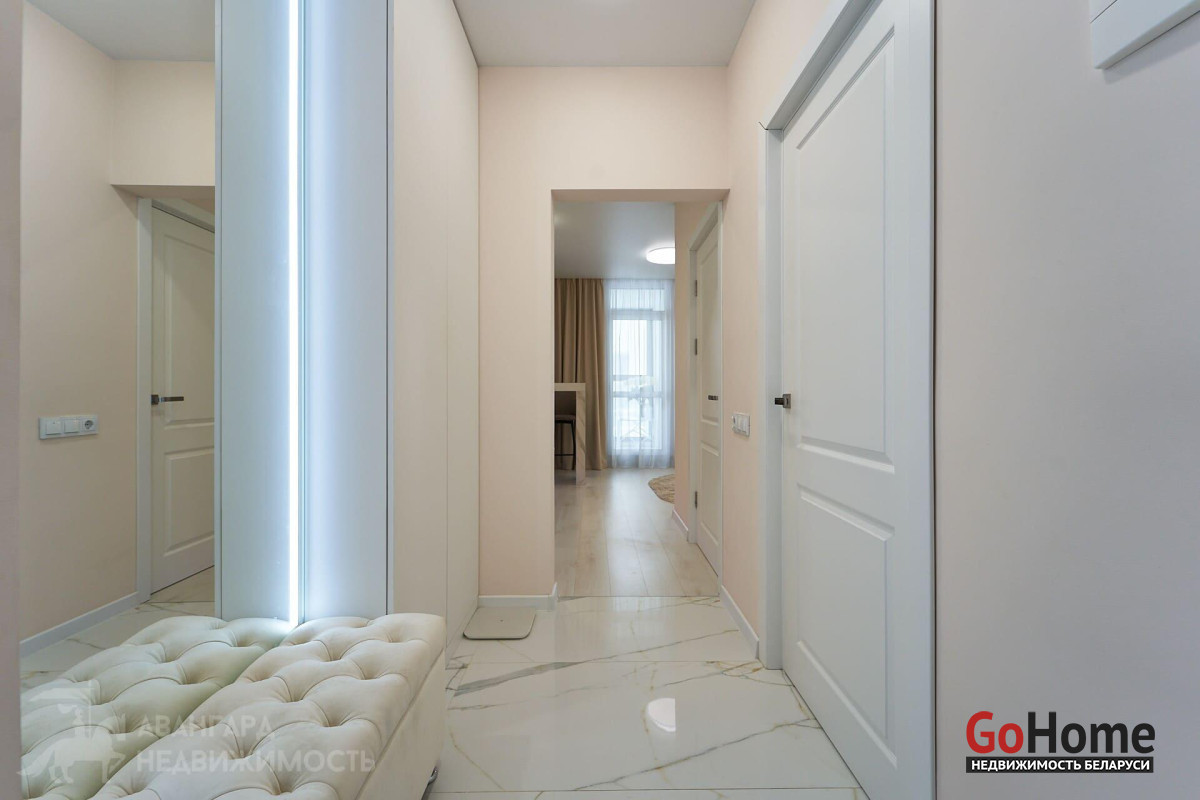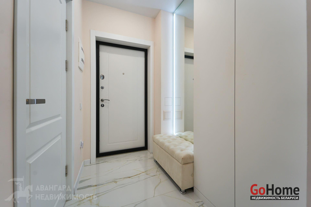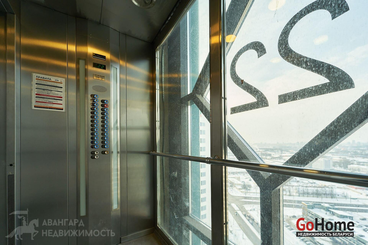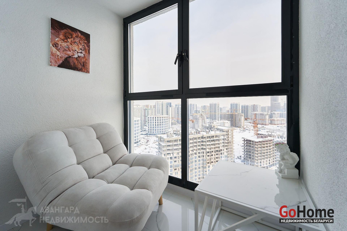 Просторная однокомнатная квартира с отдельной гардеробной комнатой в ЖК «Минск Мир» дом Лас Вегас квартал Северная Америка. Общая площадь 30.9м2 на видовом 22-ом этаже 25-этажного каркасно-блочного дома 2021 г. п. Высота помещений- 2.72 м