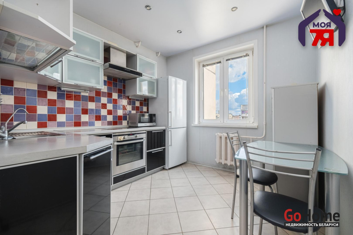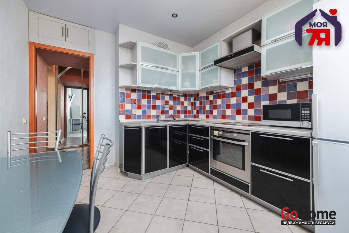 -Кухня организована функционально и удобно для повседневной жизни: напольная плитка устойчива к нагрузкам, рабочая зона защищена керамикой, встроенный гарнитур с качественной фурнитурой и встроенной техникой выглядит цельно и аккуратно. Пространство хорошо освещено, есть место и для готовки, и для спокойных семейных ужинов.