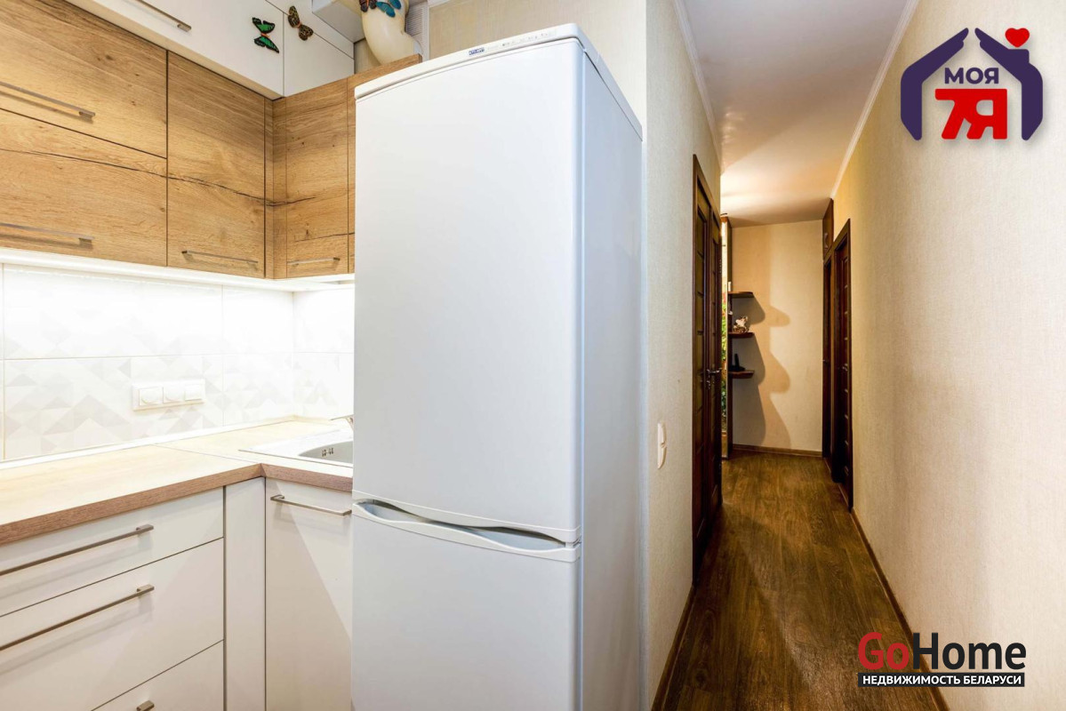 - Кухня выполнена в современном стиле с акцентом на удобство. Светлые фасады визуально расширяют помещение, встроенная мебель смотрится аккуратно и цельно. Рабочая зона защищена керамической плиткой, напольное покрытие устойчиво к нагрузкам и влаге. Эргономика продумана - здесь удобно готовить и проводить время без ощущения тесноты.