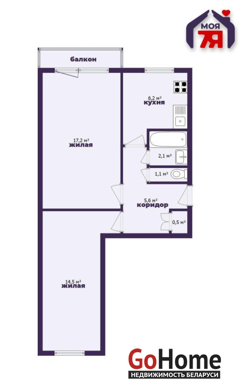 - Квартира расположена на 4 этаже пятиэтажного дома. Общая площадь составляет 48 кв.м, жилая - 31,7 кв.м.