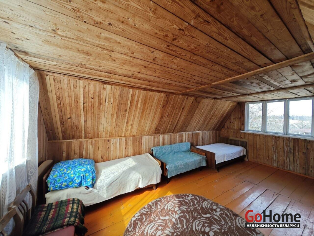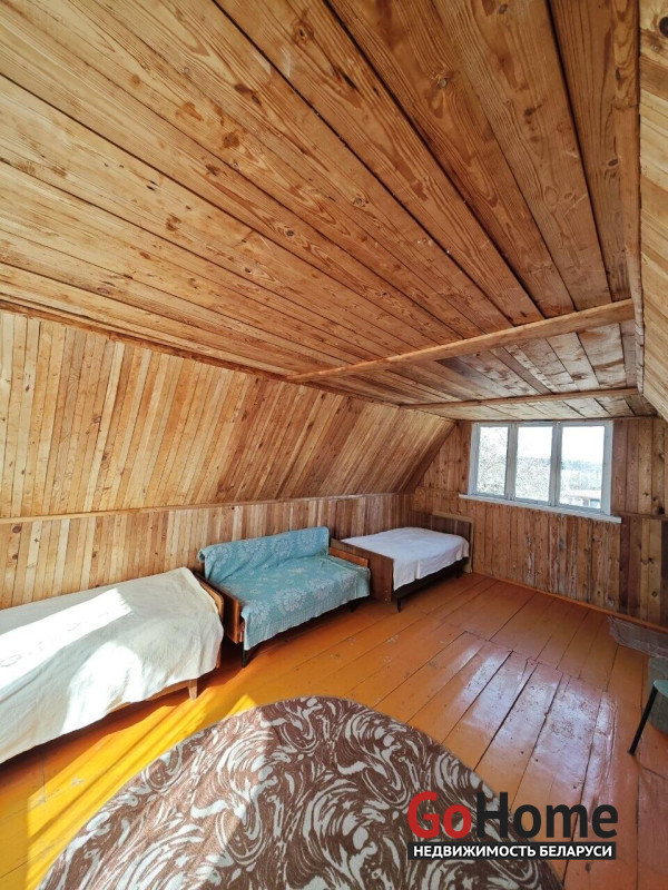 Домик в 2 этажа, ленточный фундамент 4*5.5, на первом этаже комната 4*4 с верандой 1.5*4м, на втором этаже комната 4*5,59, есть скважина, вода заведена в дом, отапливается электричеством, стены отделаны вагонкой. На первом этаже есть место для камина. Мебель (4 кровати, шкаф, стол, табуретки) и техника (холодильник и электроплита) остается.