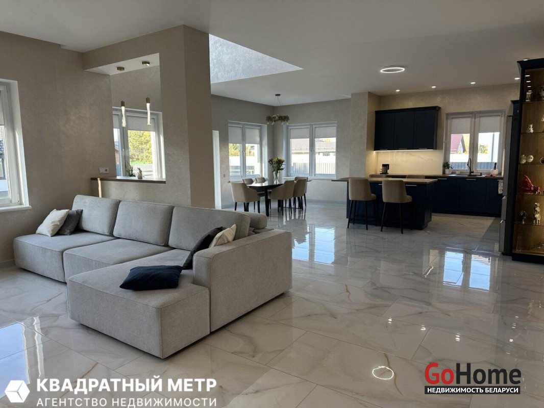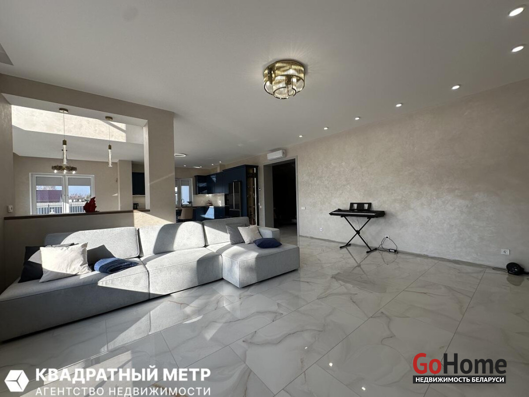 Продается жилой дом 338м2 с гаражом , 100% готовности , и гостевым домом-баней 81,3 м2 ,с террасой 100% готовности в престижной локации, Колодищи-2, на центральной улице Энтузиастов, д.128 . Рядом лес, Республиканский заказник Глебковка. Асфальтированные подъездные пути, тротуары, освещение, обслуживание дорог ДРСУ, в зимний период своевременная очистка от снега, рядом супермаркеты , школа и детский сад с бассейнами . Остановки общественного транспорта, городские линии , до метро Уручье 10 мин . Участок 15 соток, ровный , в частной собственности, полностью огорожен ,выполнены все отмостки , дорожки, освещение , ,газон, высажены туи , парковочные площадки , откатные ворота с электроприводом , по периметру видеонаблюдение. Дом построен из керамзитного блока 400 мм+ утепление каменной ватой, отделка фасада -декоративная штукатурка, кровля керамическая черепица Creaton , окна ПВХ энергосберегающие , с ламинацией тонированные . Отопление на газу , водопровод центральный , канализация местная + ливневая канализация , оптоволокно., разведена проводка охраны МВД , кондиционеры . Состав дома: кухня -гостиная, 3 спальни, кабинет, гардеробная, 2 с/у., помещение котельни-постирочной с лапомойкой , 2 терассы, 2 чердачных помещения, с местами хранения, гараж отапливаемый на 2 авто 44м2 ( ворота Alutech Prestige утепленные), подвал с хозяйственными помещениями 44м2. При отделке дома использовались лучшие отделочные материалы. Сантехника , бытовая техника , европейских производителей. Гостевой дом с сауной : 2025 года постройки, состоит из: парной на дровах, душевой ( 2 стойки ) с/у с инсталляцией -котельная, электроотопление ( котел Bosh+ бойлер на 200 л ) , (независимое от основного дома), есть мебель кухни со всей необходимой бытовой техникой, диван , стол , стулья . Отделка в парилке - липа, Есть терасса с качелями 33 м2 , зона барбекю, дровник, и площадка под бассейн. Больше информации при осмотре!