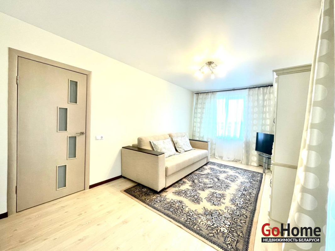 Новая мебель. В гостиной новый телевизор, и комфортный двухспальный диван.