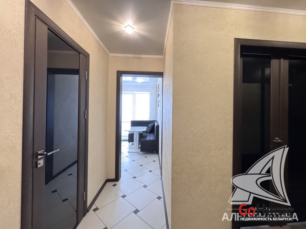 2-комнатная квартира, г. Брест, ул. Красногвардейская, 2015 г.п., 6 / 10 кирпич, 60,2 / 56,4 / 32,4 / 9,4, санузел раздельный, лоджия застеклена, стеклопакеты, межкомнатные двери - экошпон, входная дверь металлическая, одноуровневые натяжные потолки (2,55 м) - глянец (в кухне, в ванной, в санузле) и сатин (в комнатах), полы (положены на стяжку) - ламинат (в комнатах) и плитка (в кухне), стены оклеены обоями, в санузле современная плитка, заменен полотенцесушитель, акриловая ванна, установлены фильтры очистки воды (питьевой), телефон, домофон. Кухонный гарнитур, варочная поверхность, вытяжка, духовой шкаф, шкаф-купе, сантехника и холодильник по договоренности. Квартира с хорошим ремонтом. Чистый подъезд. Один грузопассажирский лифт. Во дворе игровая детская площадка, парковка для автомобилей. Лот - 260085
