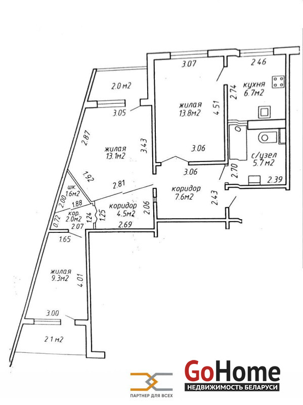 ООО «Партнер для всех», УНП 690665135, лицензия Министерства юстиции Республики Беларусь № 05240/321 от 02.12.2016, договор на оказание риэлтерских услуг № 3/7 от 16.01.2026