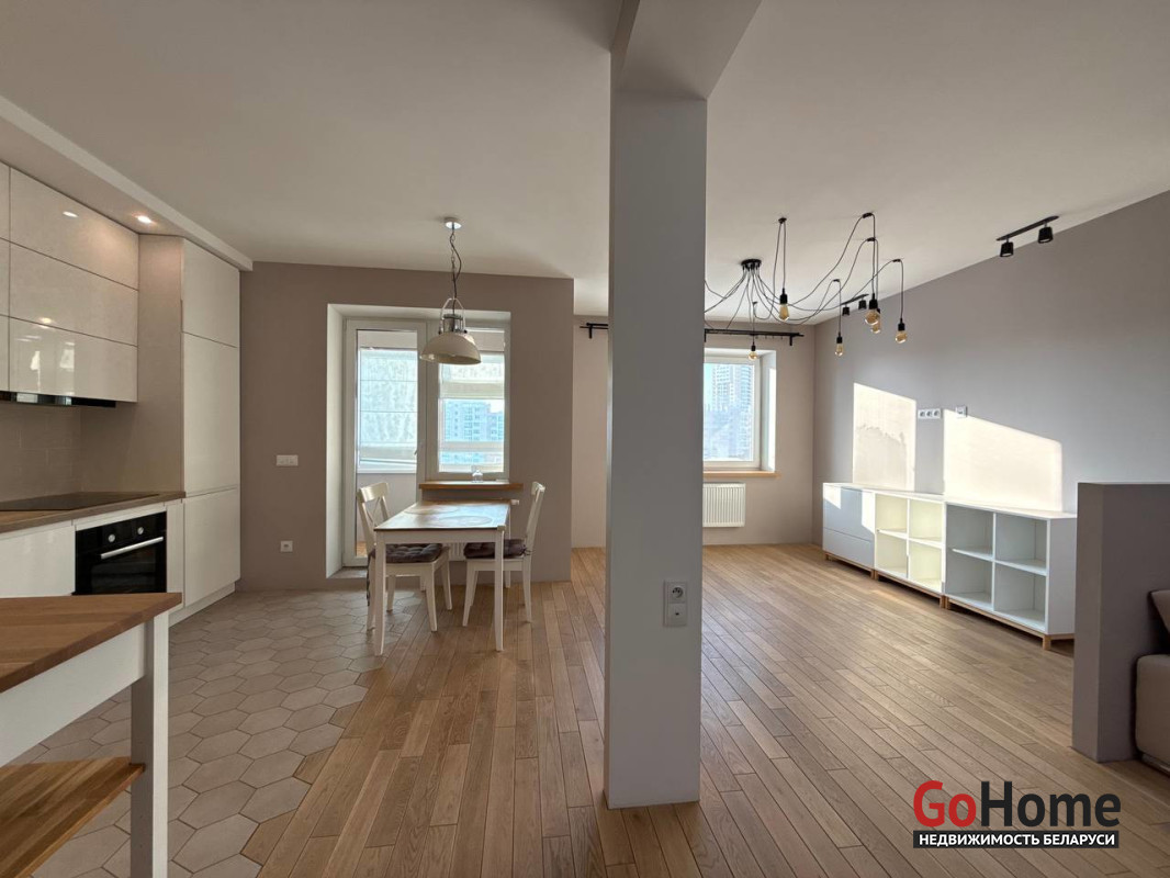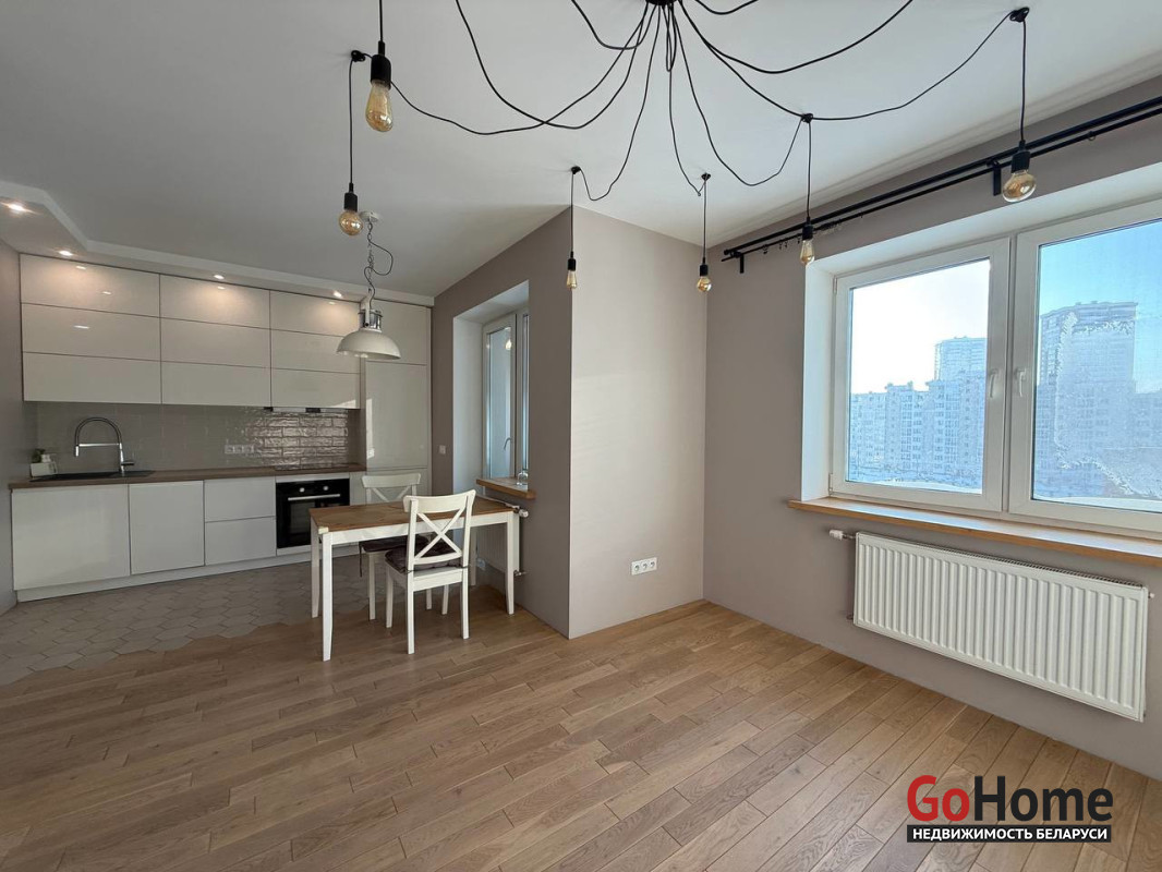 Напротив одного из самых красивых проспектов страны со всей инфраструктурой. В ближайшей доступности Минск Арена, ресторан Лебяжий, Астория, Дворец Художественной гимнастики, остановки общественного транспорта и многое другое.
