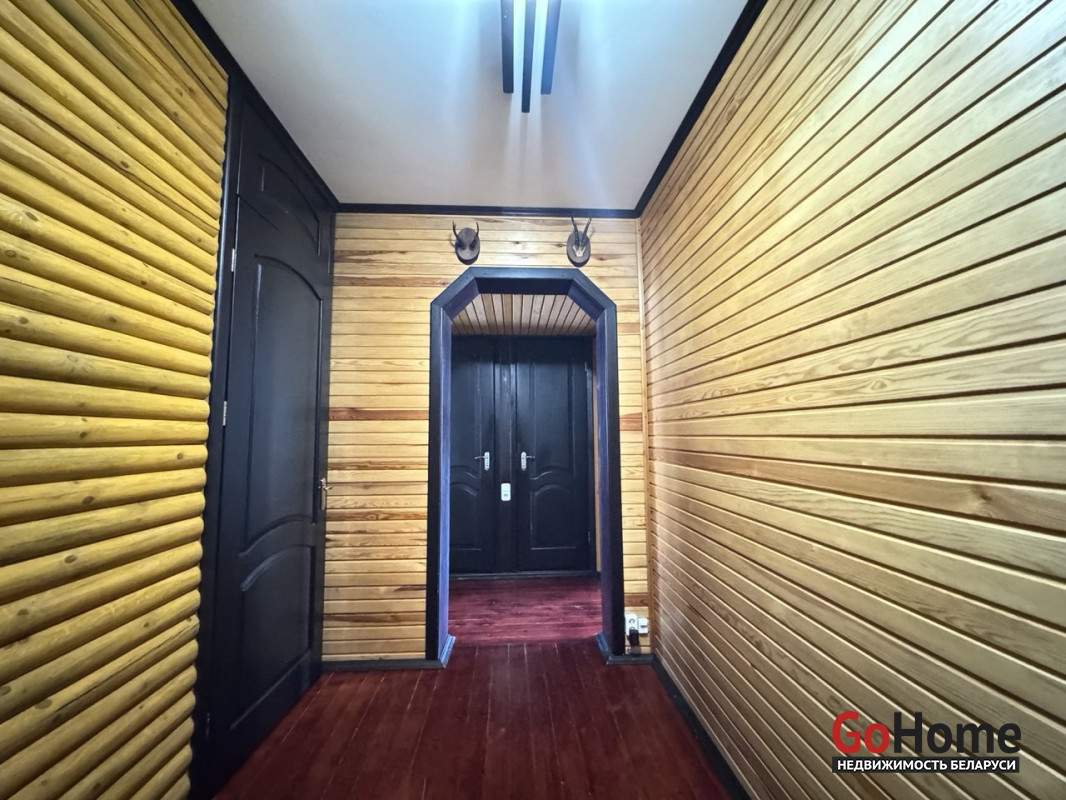 Санузел раздельный, материал стен-вагонка, ванная комната облицована плиткой, заменен полотенцесушитель, установлена акриловая ванна. Кухонный гарнитур из МДФ оббит дубовой доской.