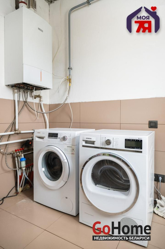 -Дом оснащён всем необходимым для жизни в комфорте: газовое отопление, центральный водопровод, местная канализация, два санузла, гардеробная, игровая комната, терраса и котельная. Первый этаж обогревается тёплыми полами, второй - радиаторами. Для электроснабжения предусмотрено 21 кВт. Дом построен из керамзитобетонных блоков, утепленный по периметру, что делает его энергоэффективным.