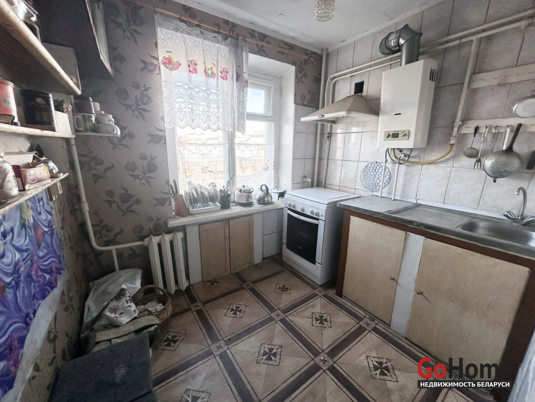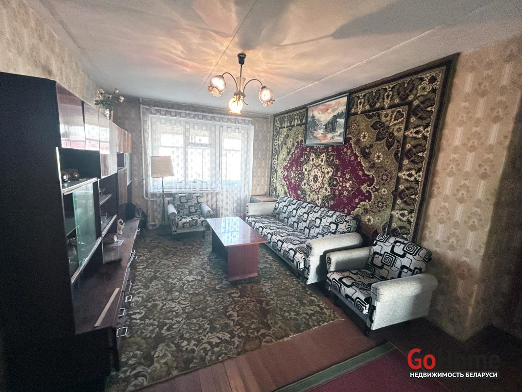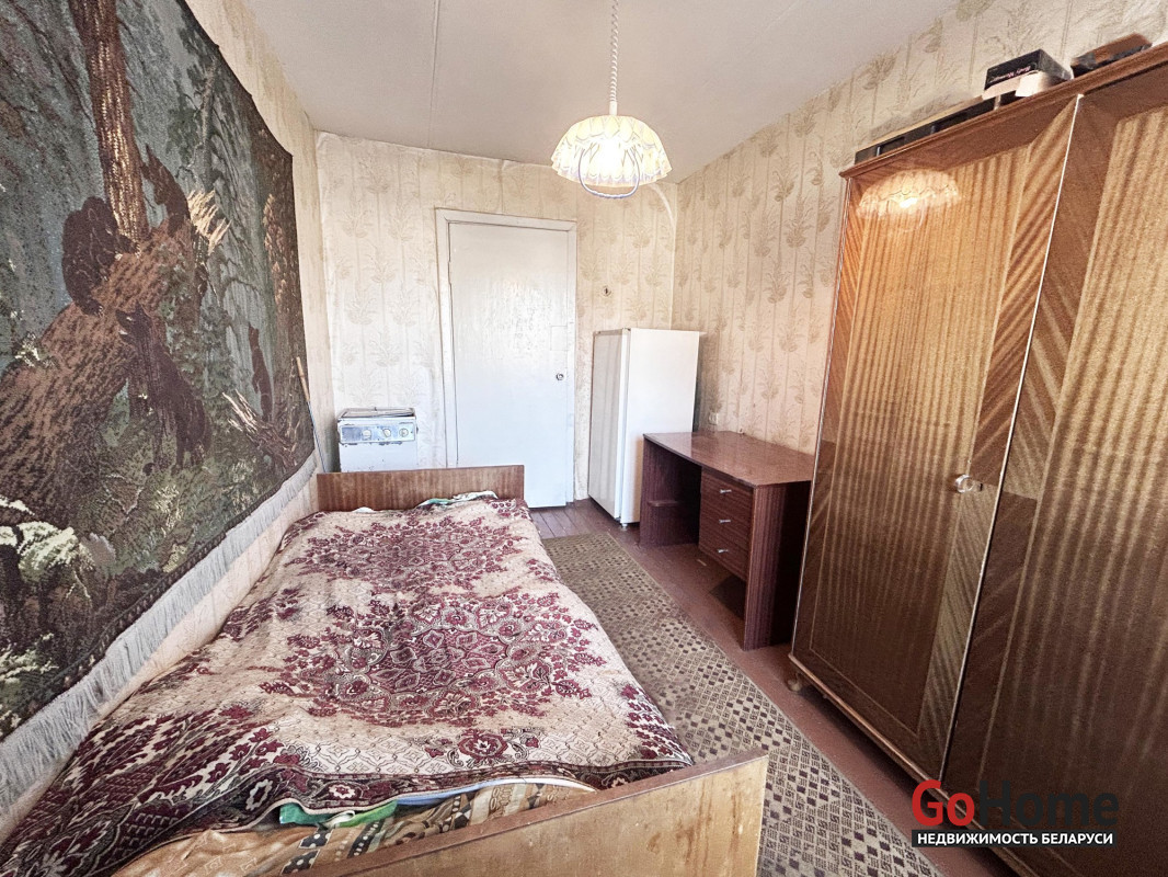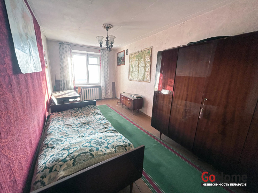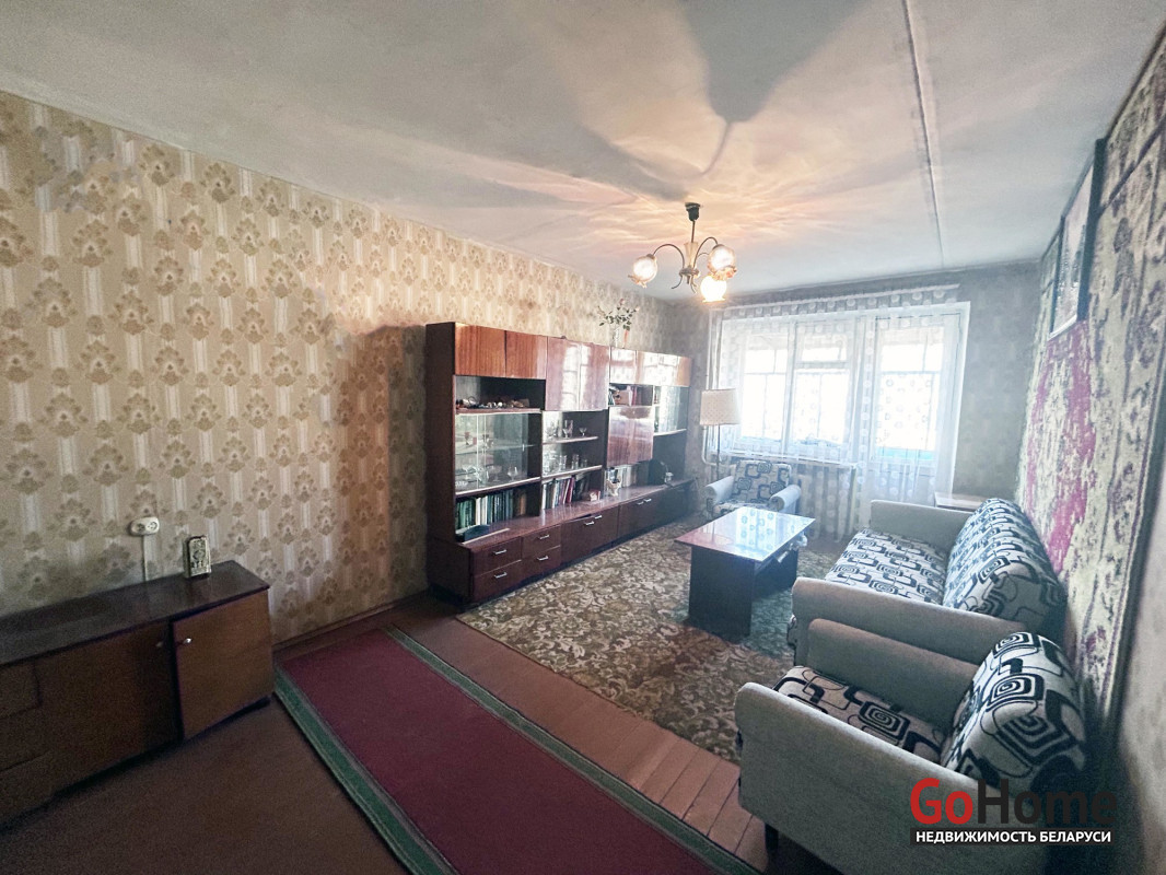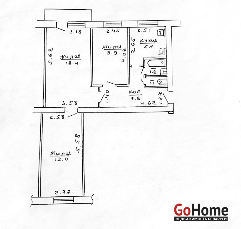 Квартира в простом жилом состоянии, под ремонт. Три комнаты: 18.4/15/ 9,9 кв. м. Раздельный санузел. Есть застекленный балкон. Входная дверь – металлическая. Окна двустворчатые деревянные. Дощатые полы. В кухне установлена газовая колонка для подогрева воды.