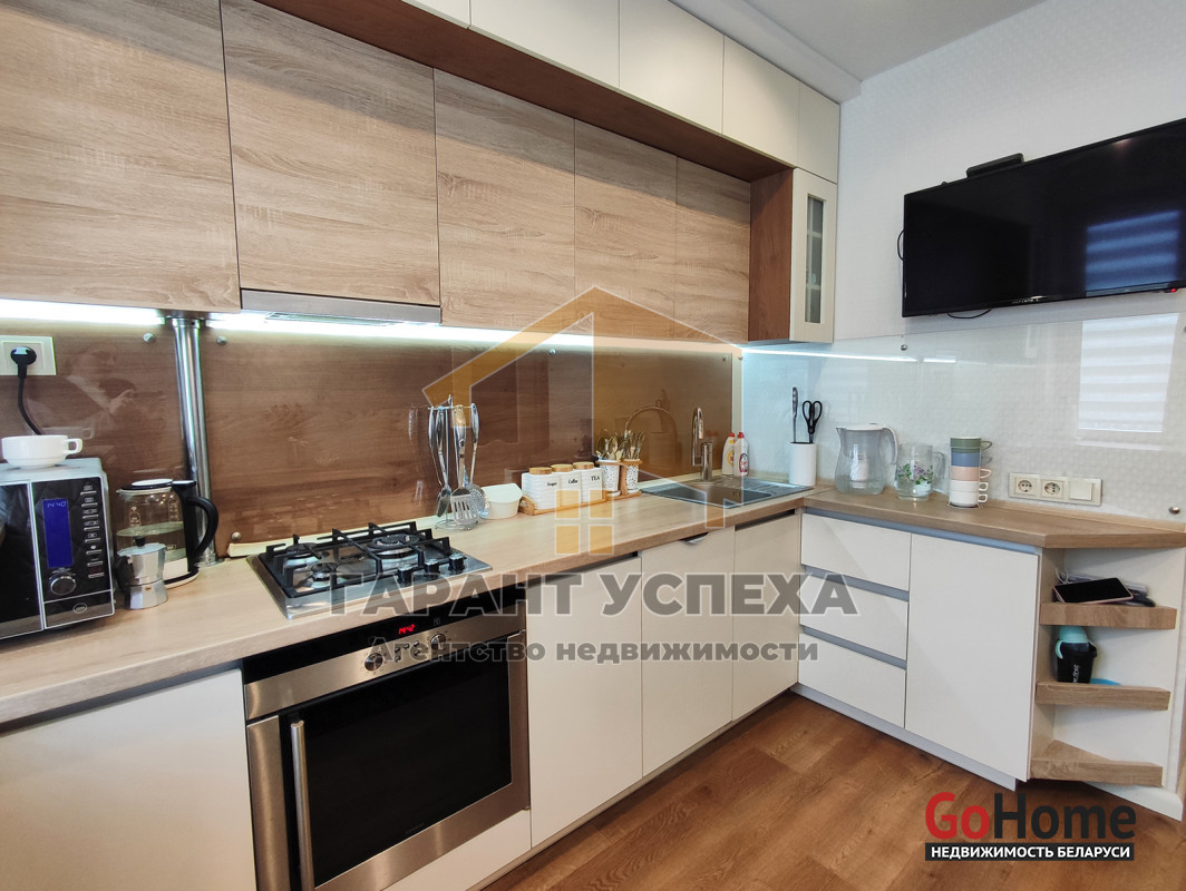 При продаже остаётся встроенная кухня и быт. техника: варочная панель, духовой шкаф, вытяжка.