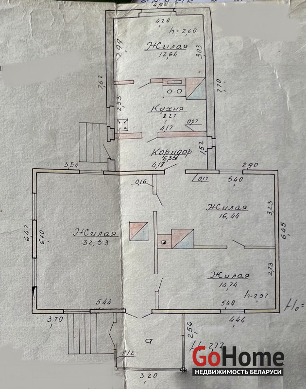 Дом 1-этажный, частично обшит сайдингом, 4 жилые комнаты, совместный санузел, общая площадь дома 91/жилая 76/кухня 8,3 м/кв.