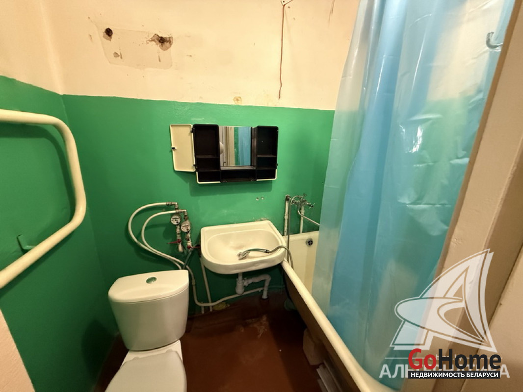 1-комнатная квартира, г. Брест, ул. Молодогвардейская, 1980 г.п., 7 / 9 кирпич, 20,6 / 20,6 / 11,3 / 4,8, санузел совмещенный, деревянные межкомнатные двери, входная дверь деревянная, потолки - побелка (2,52 м), полы - доска крашеная, стены оклеены обоями и окрашены (в санузле), чугунная ванна, домофон. Квартира в жилом состоянии. Один пассажирский лифт. Во дворе парковка для автомобилей. Лот - 260098